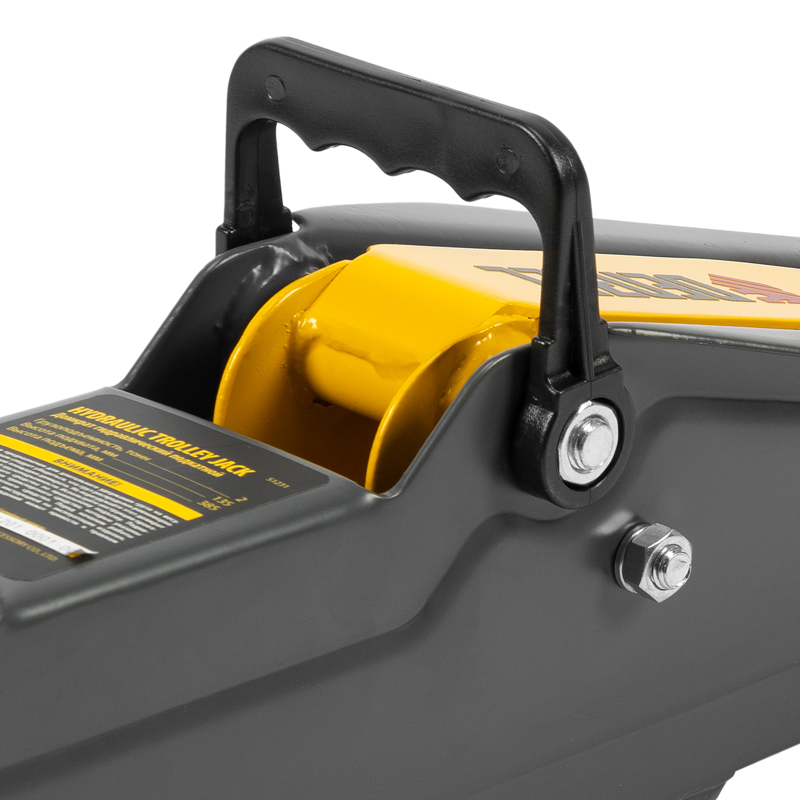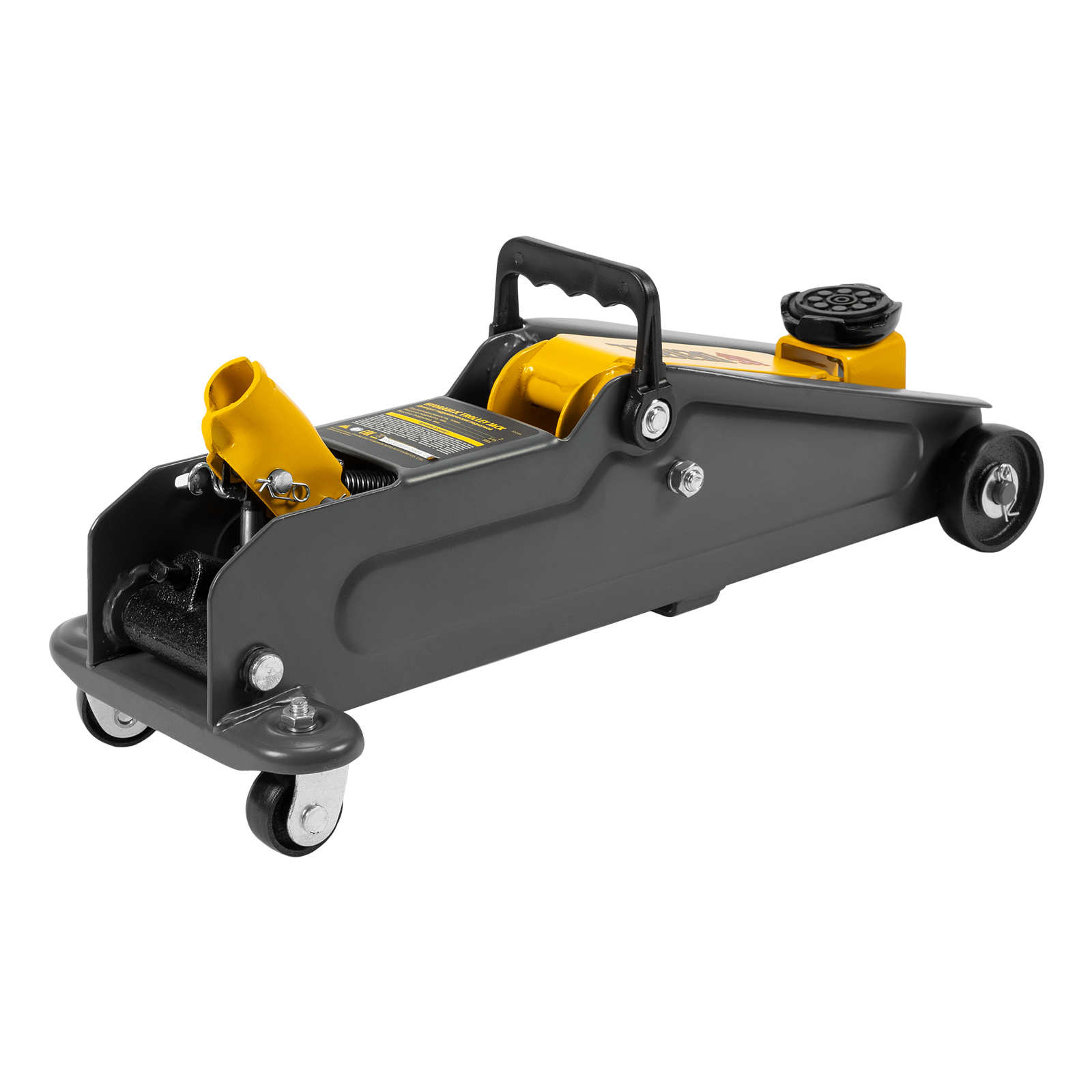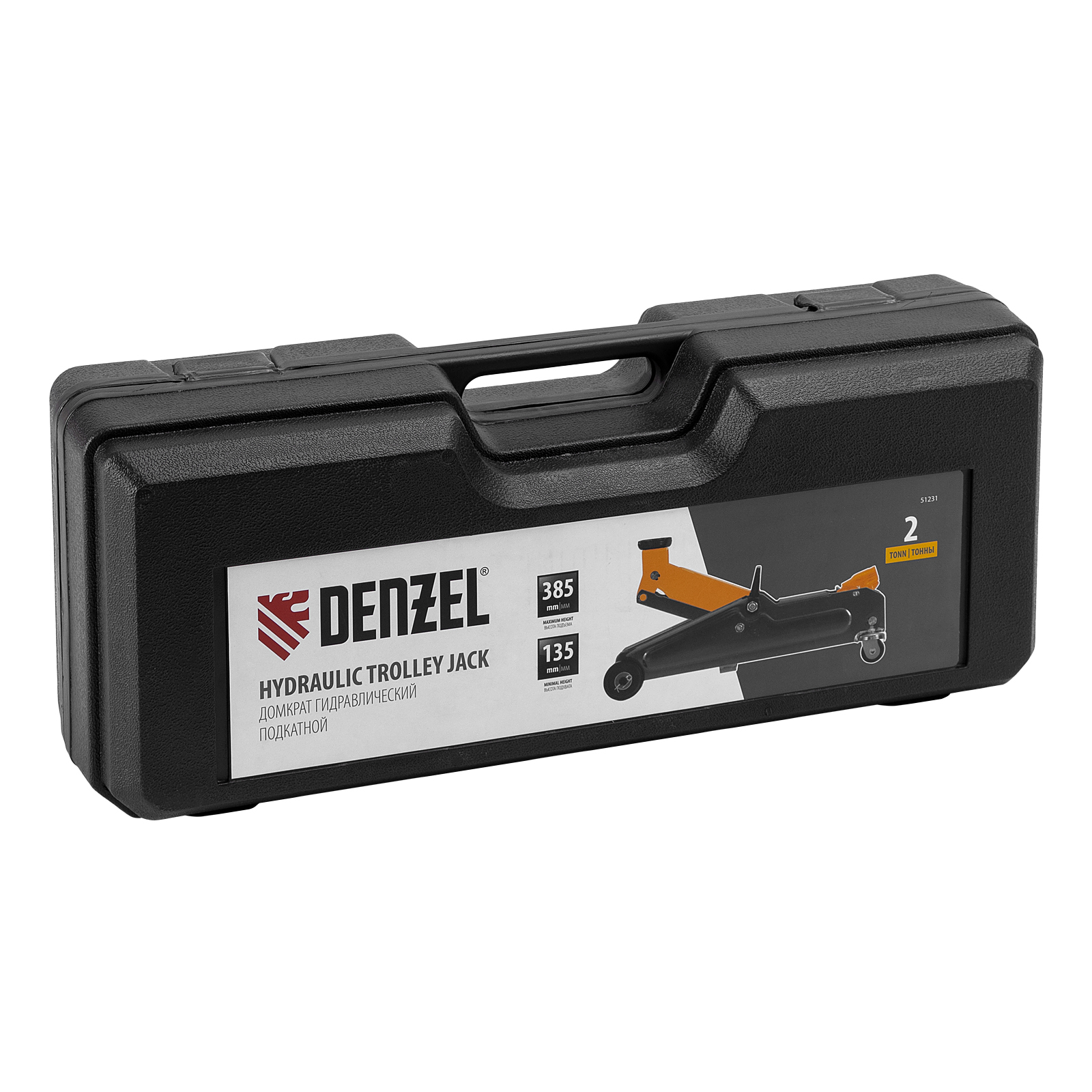 Гидравлический подкатной домкрат Denzel 51231 с высотой подхвата 135 мм, поставляющийся в пластиковом кейсе, предназначен для плавного подъема грузов массой до 2 т на высоту до 385 мм. Домкрат пригодится владельцам легковых автомобилей со стандартным клиренсом.