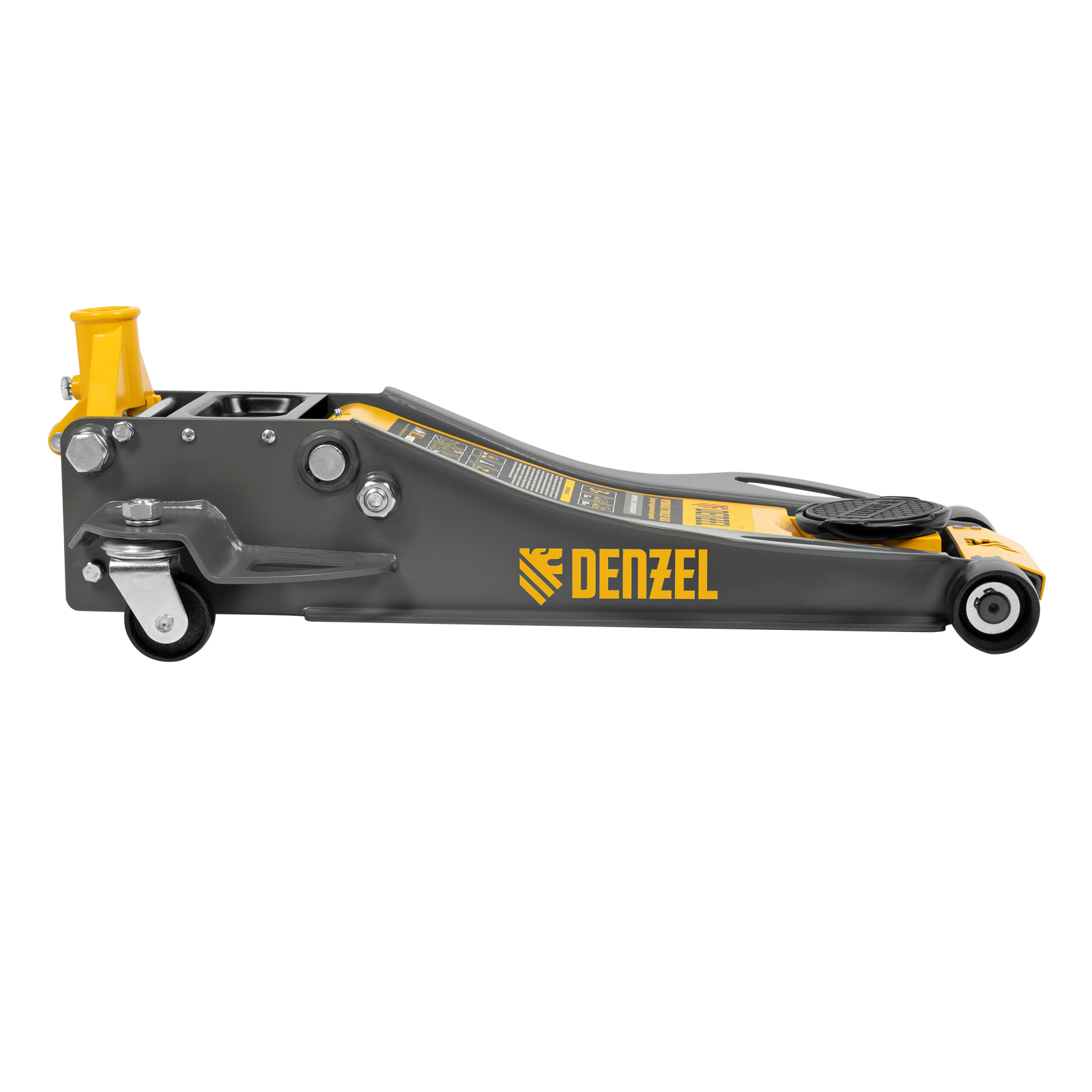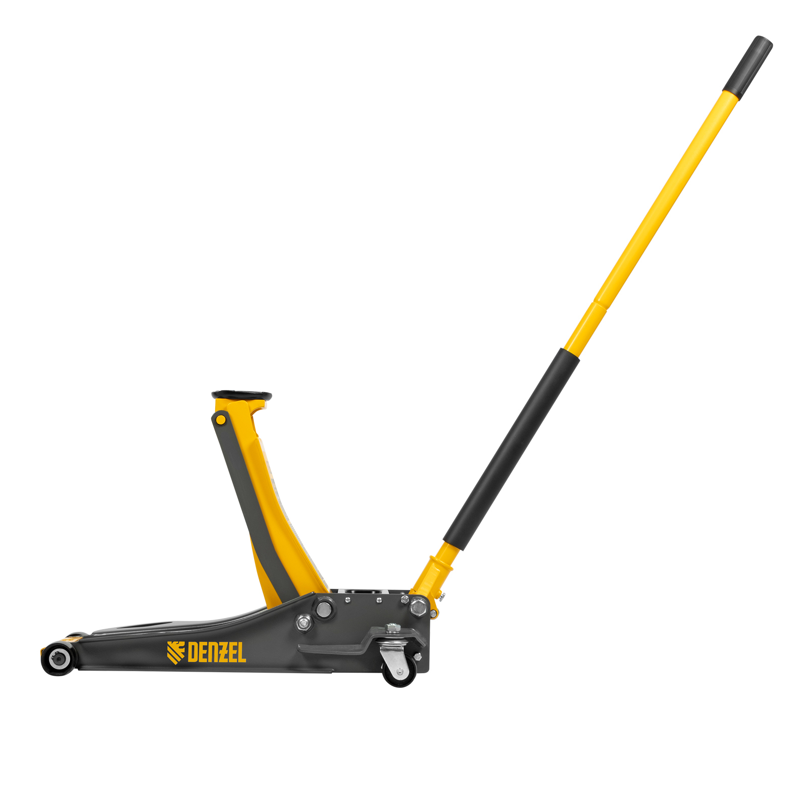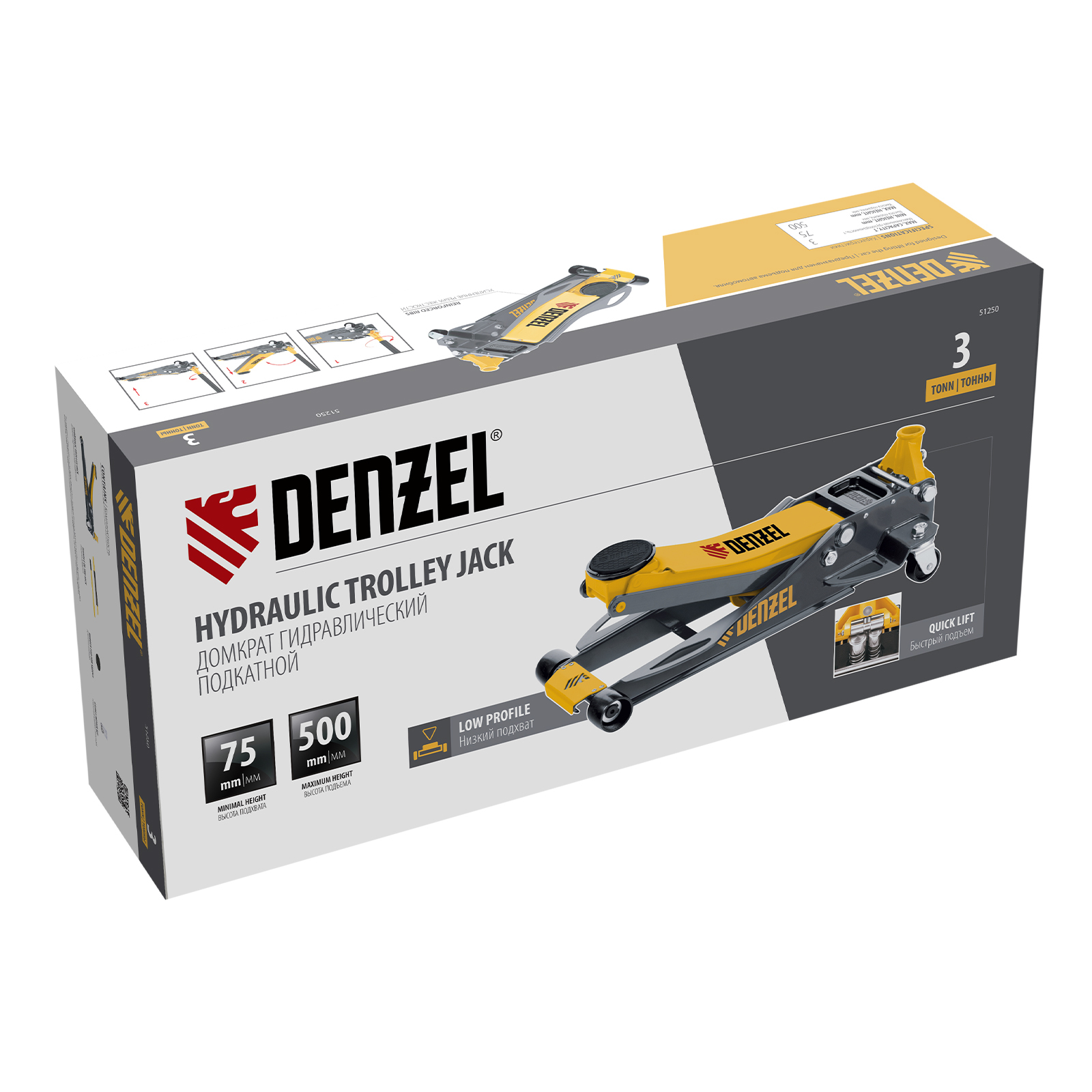 Профессиональный подкатной гидравлический домкрат Denzel 51250 с низким подхватом используется для быстрого подъема на высоту 75-500 мм всех типов автомобилей массой до 3 т и с любым клиренсом, в том числе сверхнизким. В гидравлическом блоке предусмотрено 2 насоса (система быстрого подъема QUICK LIFT), благодаря чему для достижения предельной высоты достаточно 6 качков рукоятки. Домкрат подходит для использования на станциях профессионального техобслуживания и шиномонтажа, а также для личного использования.