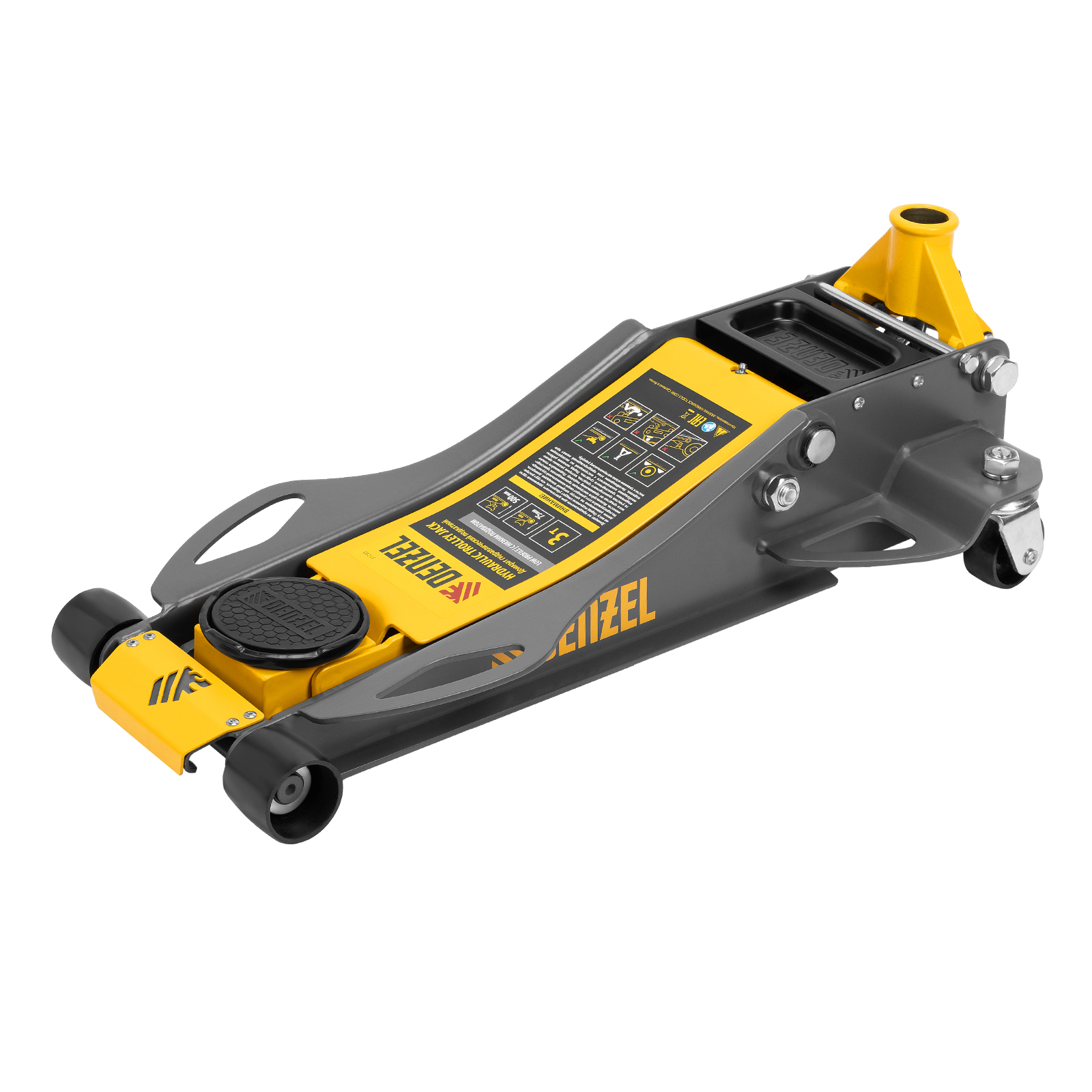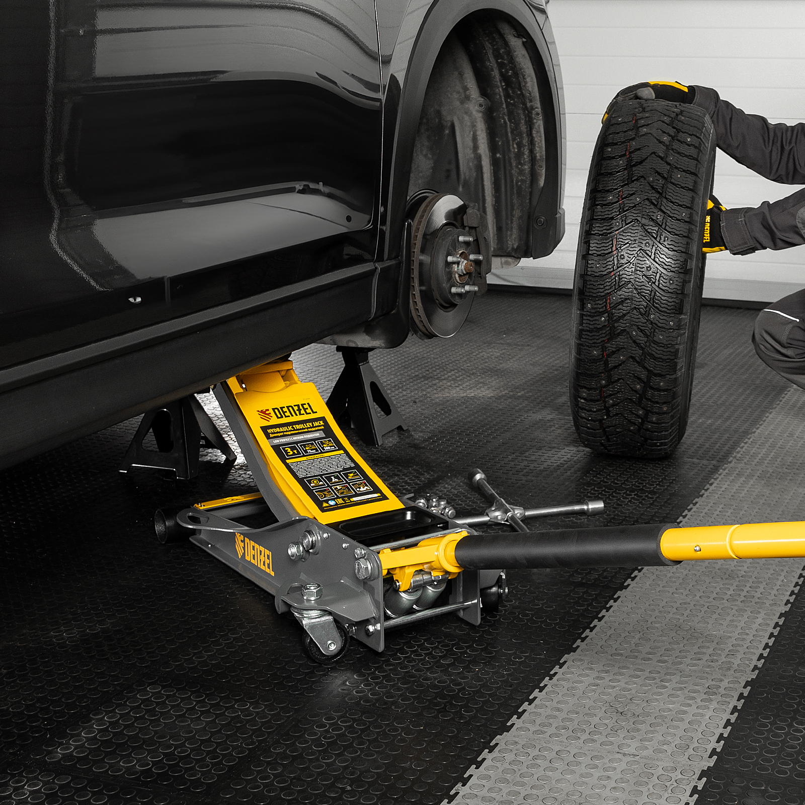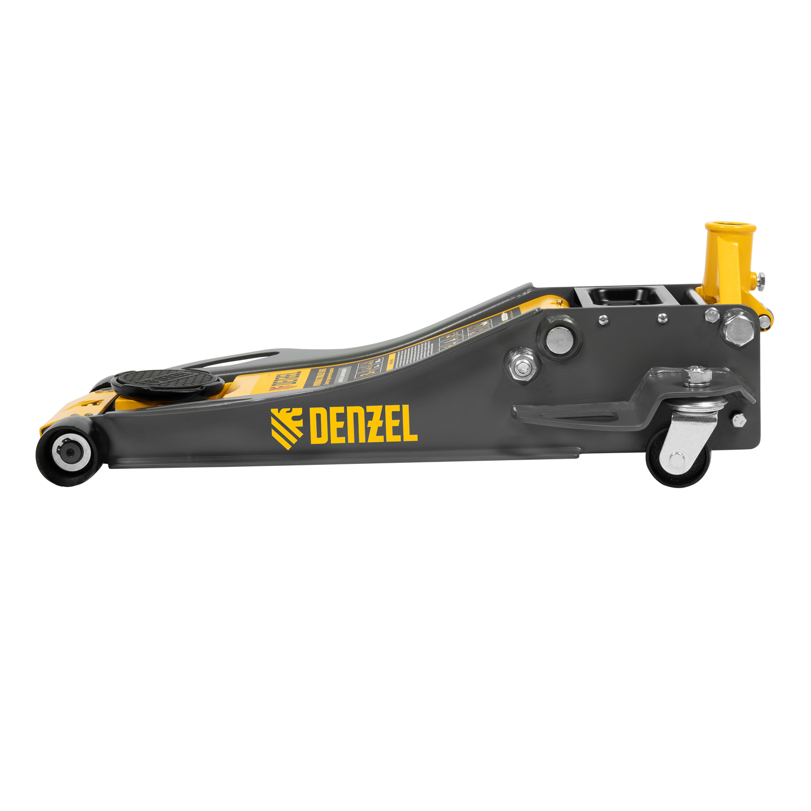 Профессиональный подкатной гидравлический домкрат Denzel 51250 с низким подхватом используется для быстрого подъема на высоту 75-500 мм всех типов автомобилей массой до 3 т и с любым клиренсом, в том числе сверхнизким. В гидравлическом блоке предусмотрено 2 насоса (система быстрого подъема QUICK LIFT), благодаря чему для достижения предельной высоты достаточно 6 качков рукоятки. Домкрат подходит для использования на станциях профессионального техобслуживания и шиномонтажа, а также для личного использования.