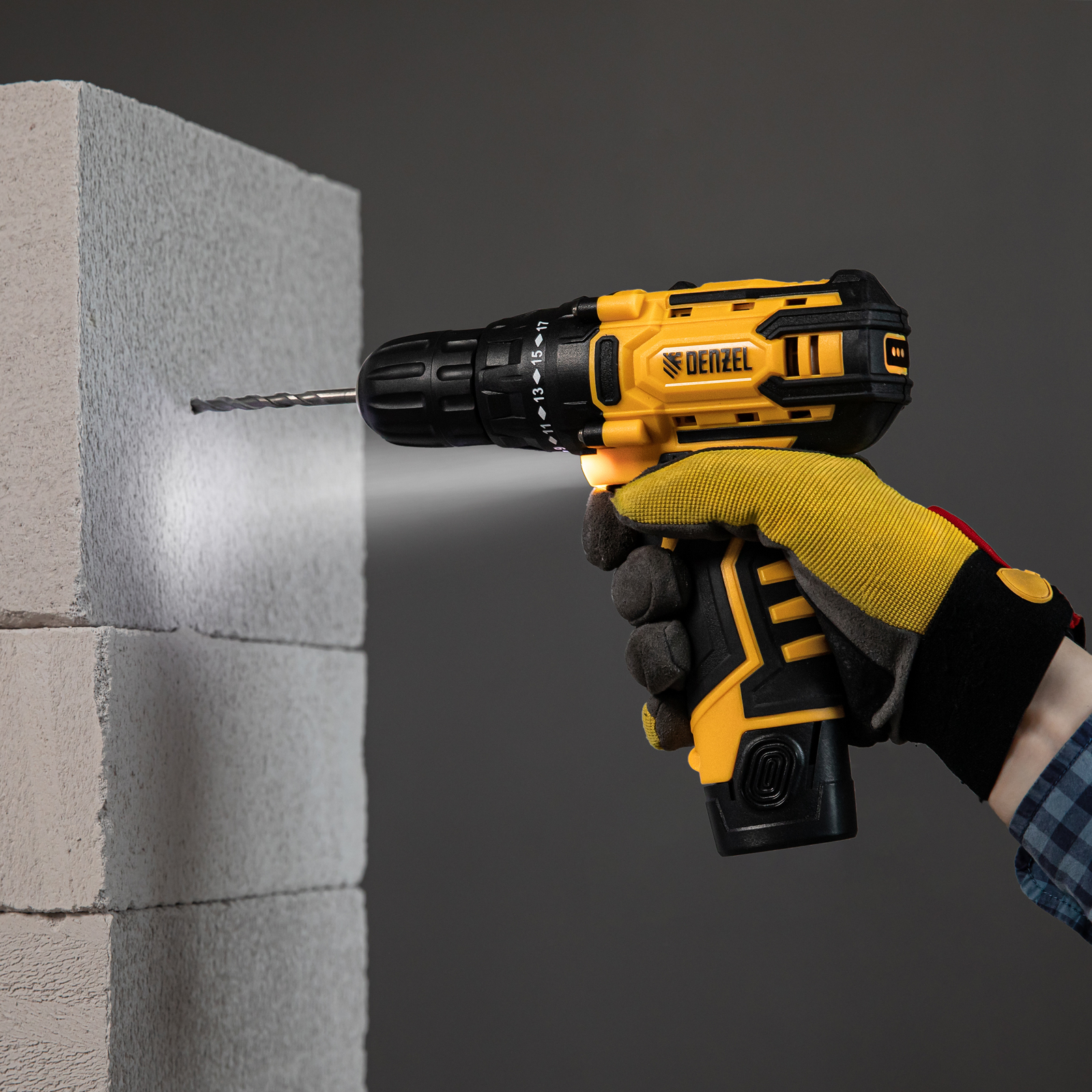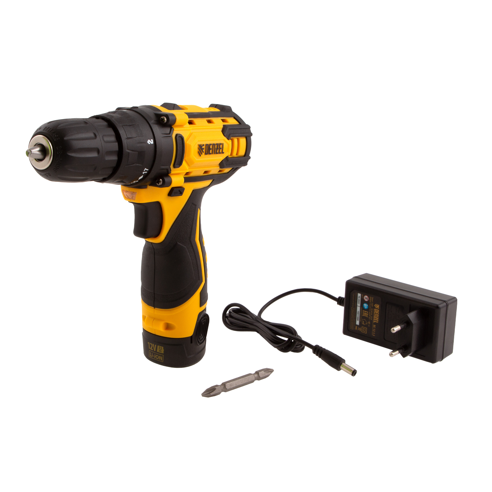 Аккумуляторная дрель-шуруповерт Denzel CDL-12CB 26102 с батареей Li-Ion 12 В предназначена для монтажа и демонтажа резьбовых соединений, сверления отверстий в металле (до 10 мм), древесине (до 16 мм), пластмассе и других материалах. Инструмент пригодится профессионалам и любителям на строительной площадке, дома или на даче.,Надежный литий-ионный аккумулятор без эффекта памяти обеспечивает долгий срок службы инструмента. Дрель не зависит от сети питания, что делает удобной работу на строительных объектах, на высоте и в отдаленных участках дома.