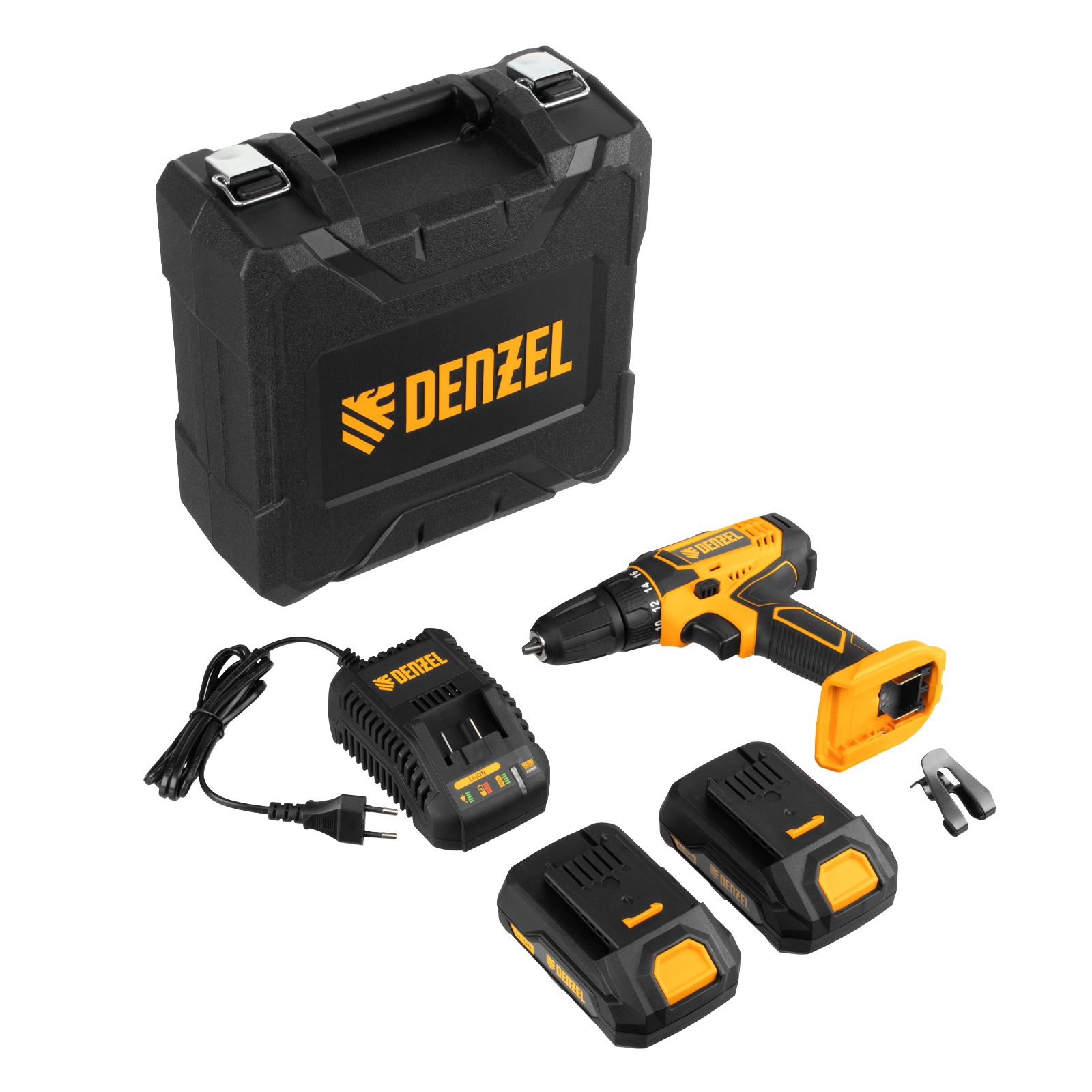 Аккумуляторная дрель-шуруповерт Denzel CDL-18-02BM 26116 с Li-Ion аккумуляторами 18 В предназначена для ввинчивания и вывинчивания винтов и шурупов, а также получения отверстий в различных конструкционных материалах: металле, древесине, пластмассе и т.п. Оптимальна для интенсивного использования как в быту, так и на строительных объектах, пригодится в процессе ремонта, при сборке мебели и т.д. Система защиты от перегрузки, перегрева, глубокой разрядки и нежелательного перезаряда обеспечивает долговечность инструмента и комфортную работу.