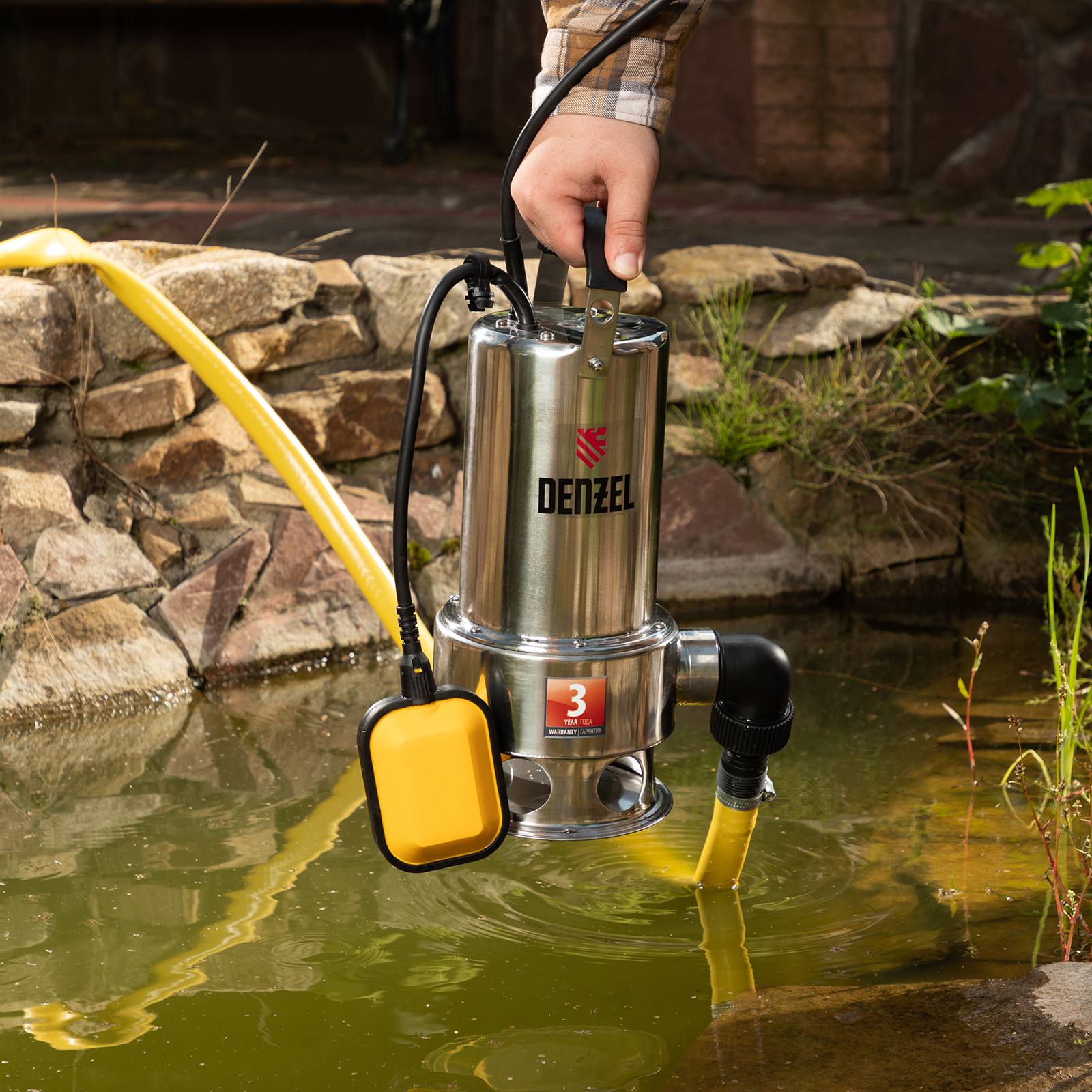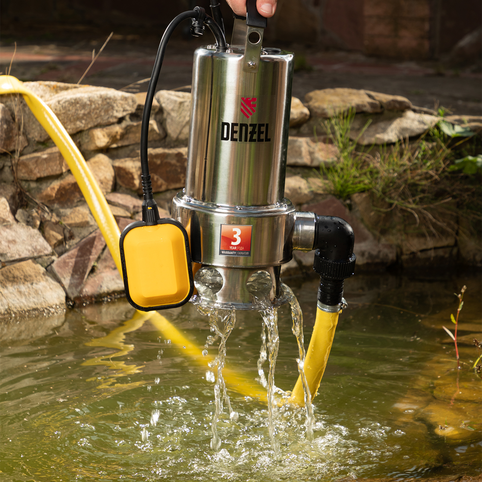 Дренажный насос Denzel DP1100X 97224 мощностью 1100 Вт и производительностью 15500 л/ч, с высотой подъема 11 м, используется для организации системы водоснабжения и полива. Также обеспечивает эффективное отведение грязной воды с содержанием частиц до 35 мм из подвалов и резервуаров.