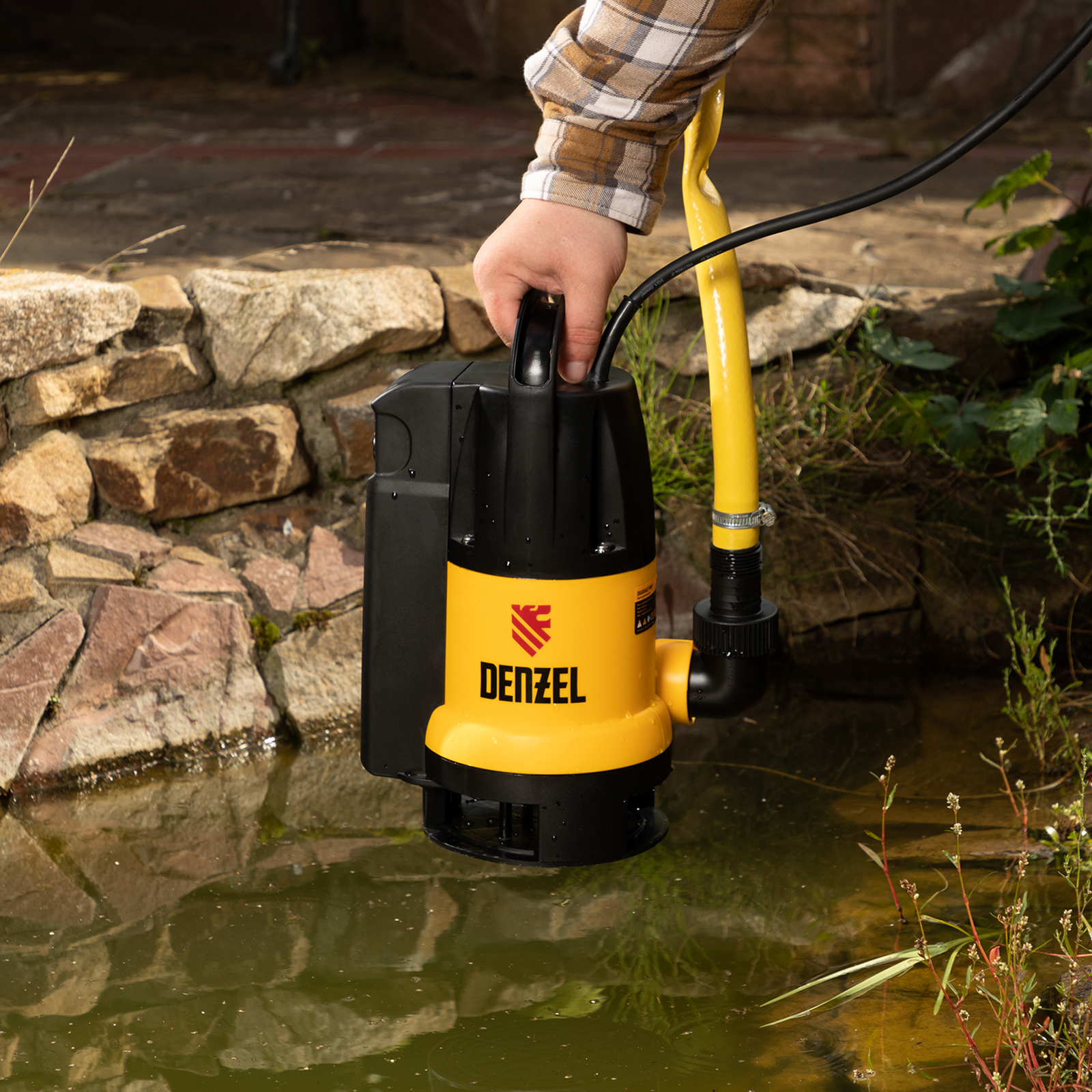Дренажный насос Denzel DP800A 97219 мощностью 800 Вт и производительностью 13000 л/ч обеспечивает высоту подъема 5 м и подходит для откачки грязной воды с включениями диаметром до 35 мм из резервуаров, подвалов, погребов, канав. Используется также для подачи чистой воды из колодцев и организации систем полива.
