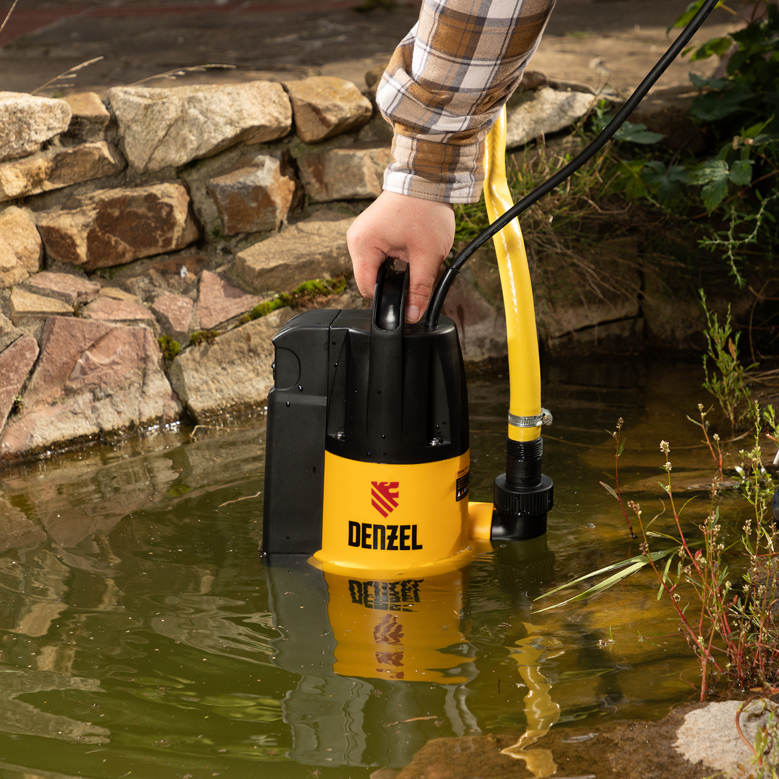 - Эргономичность — насос легко транспортировать и опускать благодаря небольшому весу и ручке на корпусе.