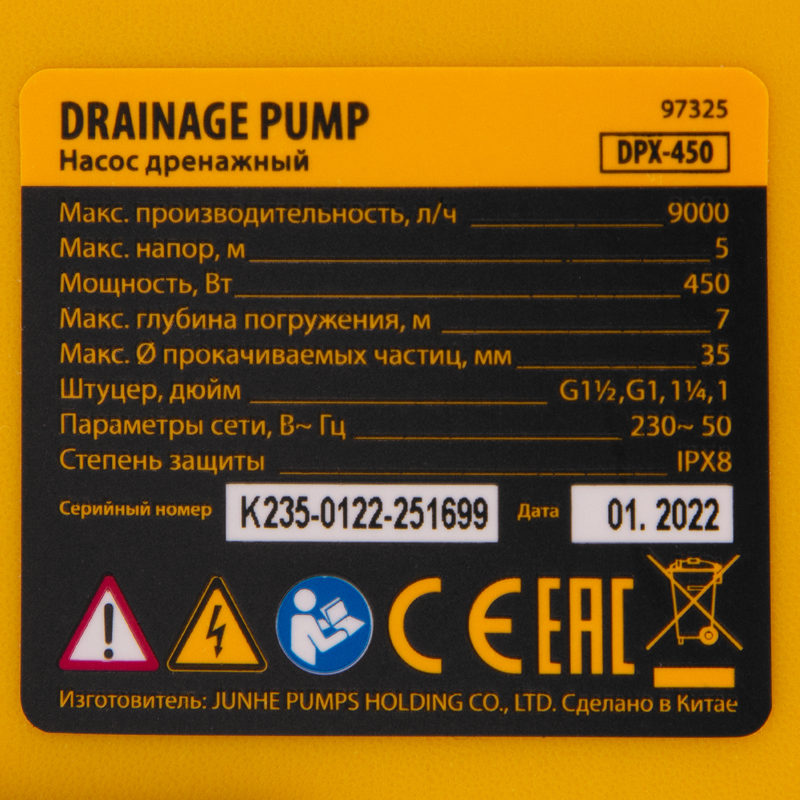 Дренажный насос Denzel DPХ450 97325 мощностью 450 Вт способен перекачивать до 9000 л воды в час и поднимать ее на высоту до 5 м. Используется для подачи чистой воды из резервуаров и организации систем орошения. Также подходит для откачивания грязной воды с частицами диаметром до 35 мм из канав и подвалов. Для предотвращения работы на сухом ходу предусмотрен поплавковый механизм.