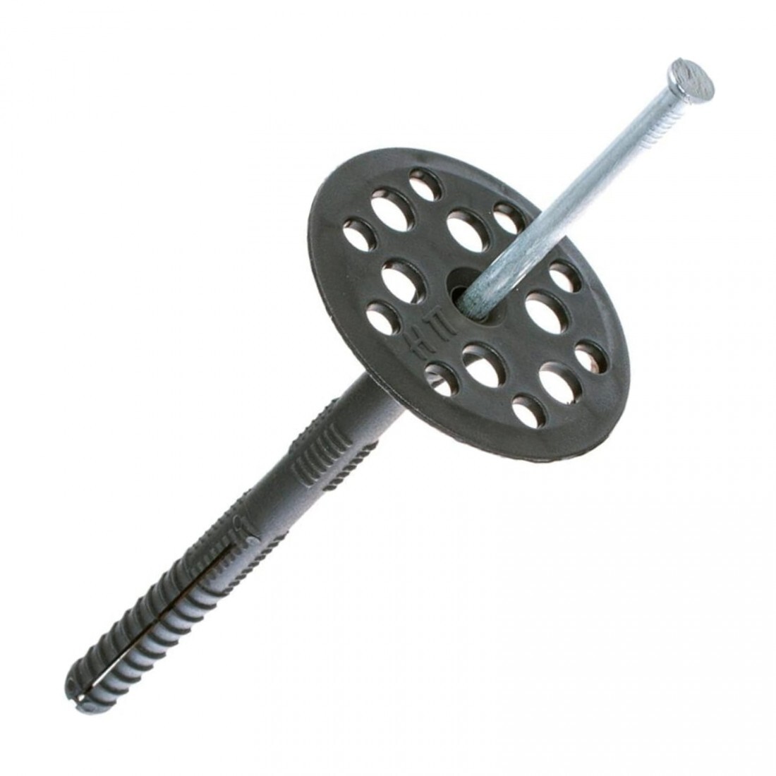 Дюбель для теплоизоляции Стройбат с металлическим гвоздем 10х120 мм, 50 шт/упак купить в Екатеринбурге по оптовой цене в магазине NOVA Prom Group. Применяется для крепления теплоизоляционных строительных материалов и изделий толщиной до 70 мм методом сквозного монтажа. Состоит из полимерного тарельчатого дюбеля диаметром 10 мм, длиной 120 мм, диаметром шляпки 60 мм и со стальным гвоздем с потайной головкой. Дюбель для теплоизоляции Стройбат подходит для тяжелого и легкого бетона, полнотелого и пустотелого керамического кирпича. Используется для внутренних и наружных стен в мало- и многоэтажном строительстве.
