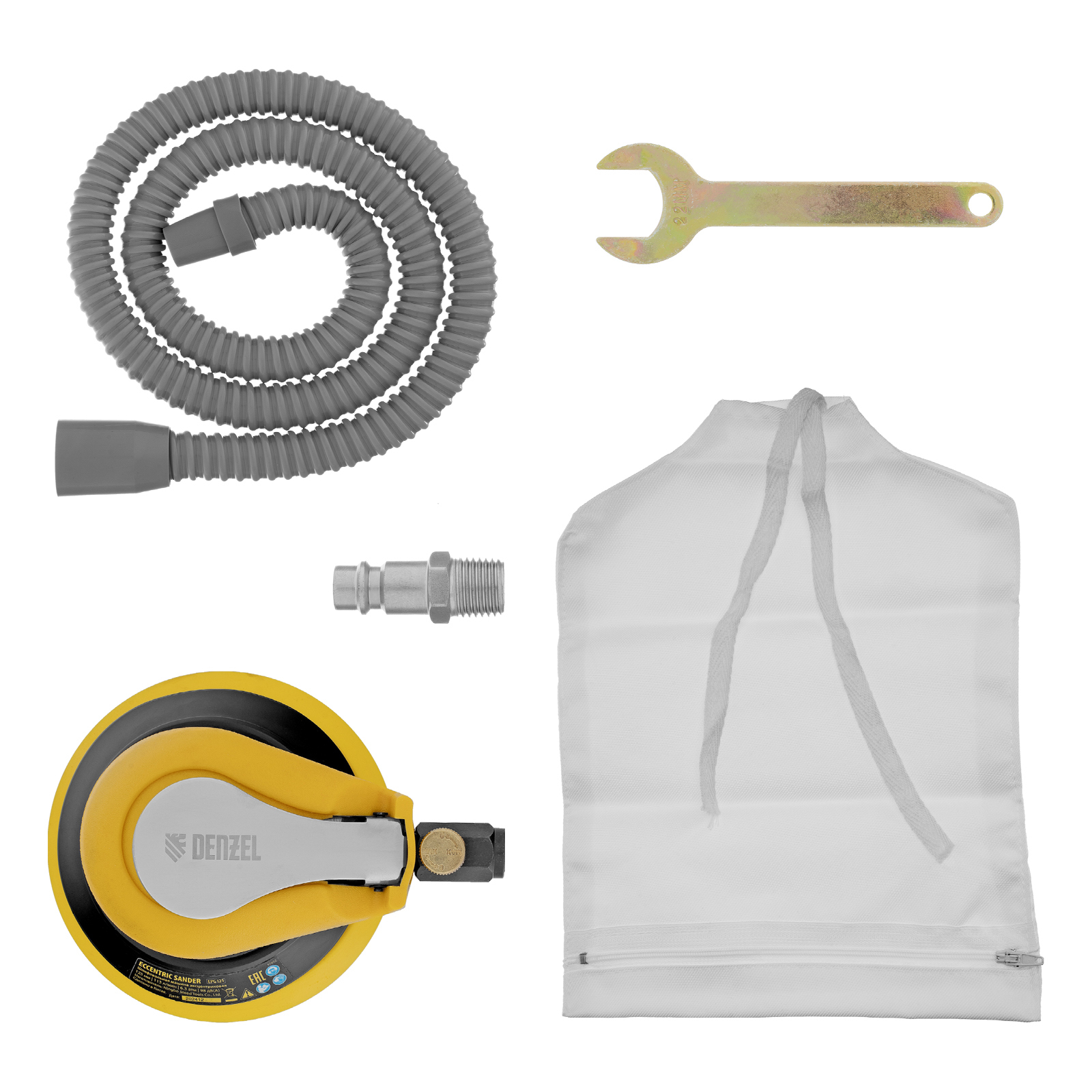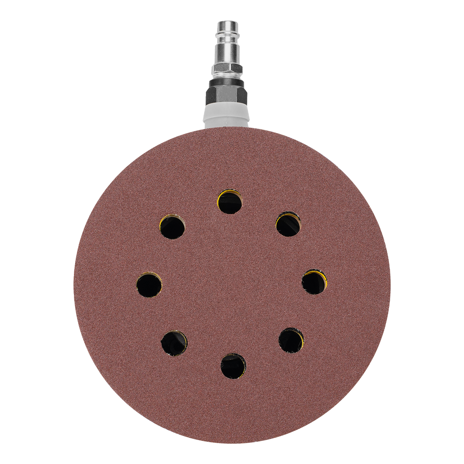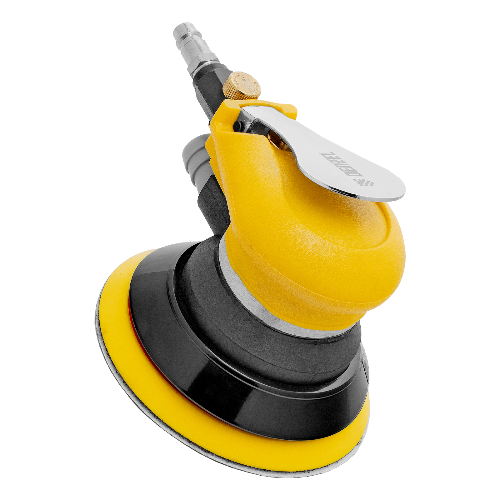 Эксцентриковая шлифовальная машина Denzel EPG125 57492 с амплитудой колебаний 5 мм обеспечивает скорость вращения до 9000 об/мин при среднем расходе воздуха 113 л/мин и давлении 6,3 бар, что делает ее идеальным инструментом для шлифовки и обработки различных материалов. Диаметр подошвы составляет 125 мм, поэтому инструмент оптимален для выполнения работ в труднодоступных местах, а также для детальной обработки небольших поверхностей, что особенно важно при подготовке к покраске и отделке.