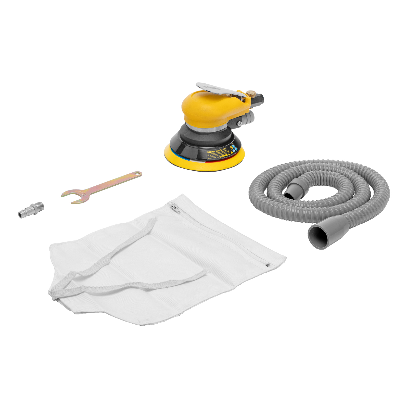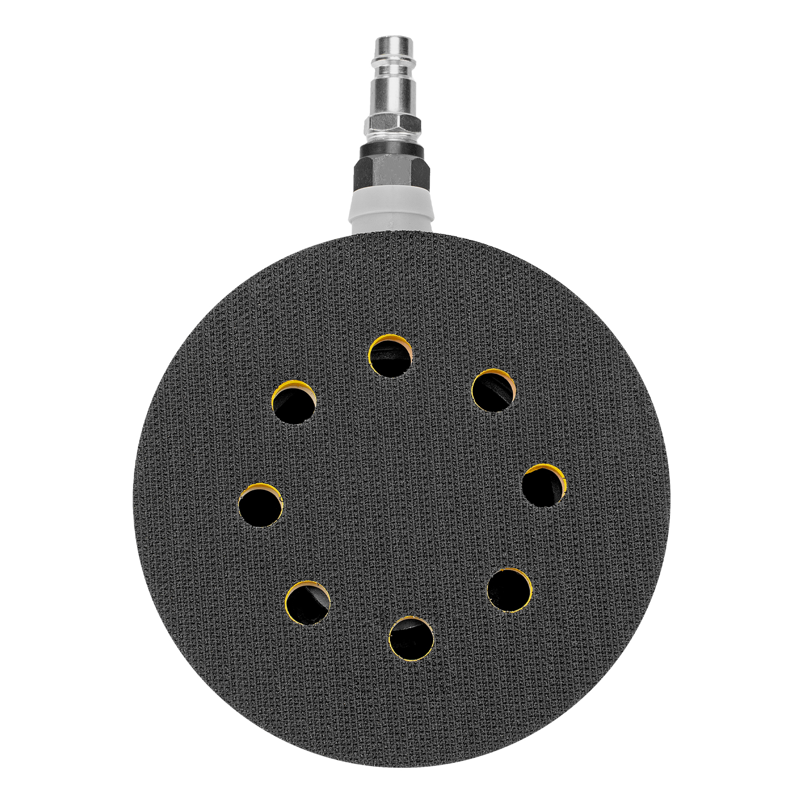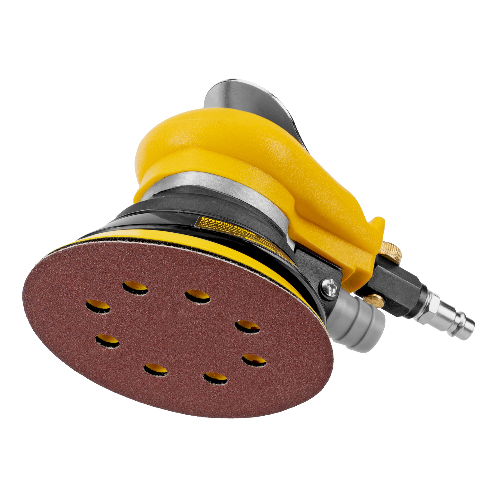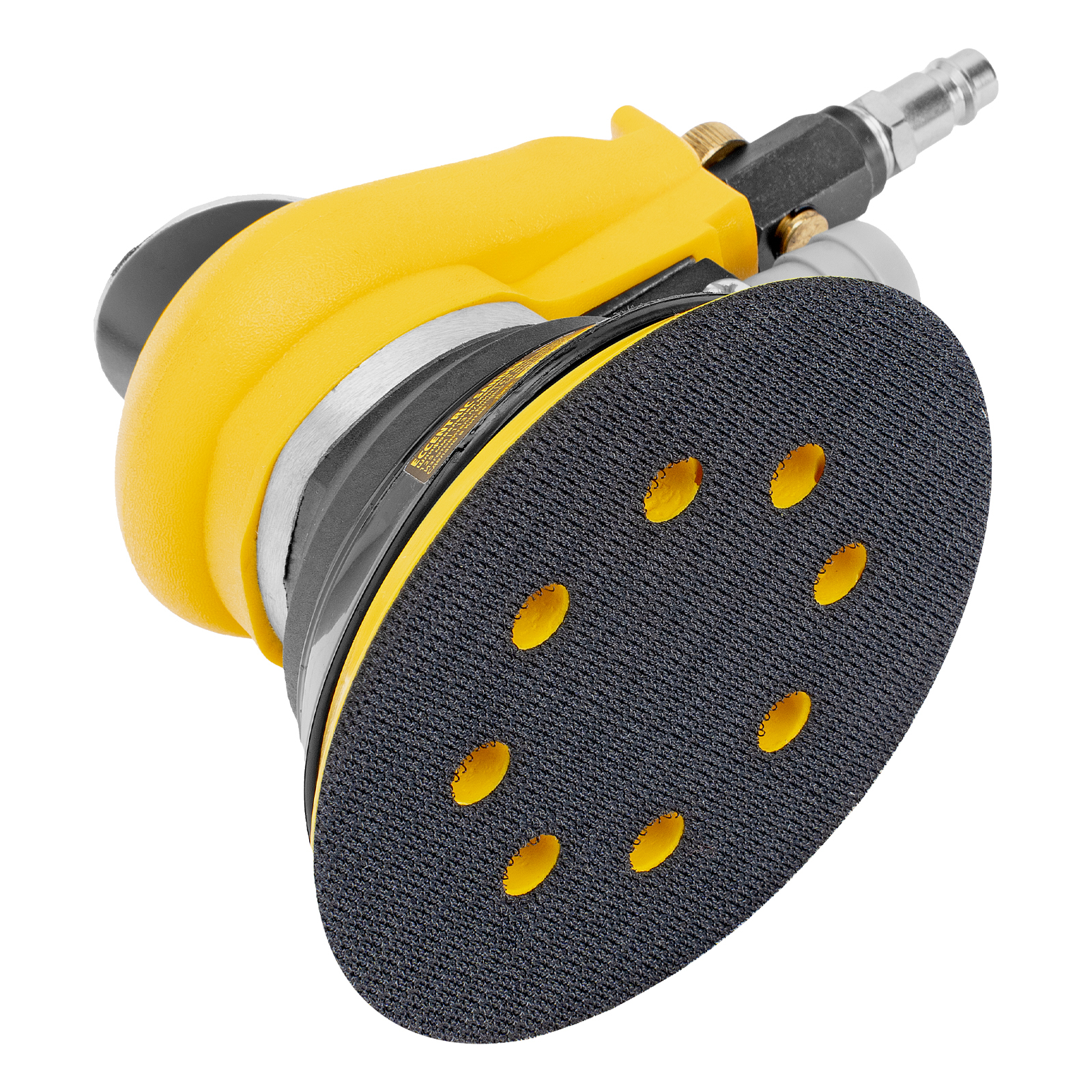 Эксцентриковая шлифовальная машина Denzel EPG125 57492 с амплитудой колебаний 5 мм обеспечивает скорость вращения до 9000 об/мин при среднем расходе воздуха 113 л/мин и давлении 6,3 бар, что делает ее идеальным инструментом для шлифовки и обработки различных материалов. Диаметр подошвы составляет 125 мм, поэтому инструмент оптимален для выполнения работ в труднодоступных местах, а также для детальной обработки небольших поверхностей, что особенно важно при подготовке к покраске и отделке.
