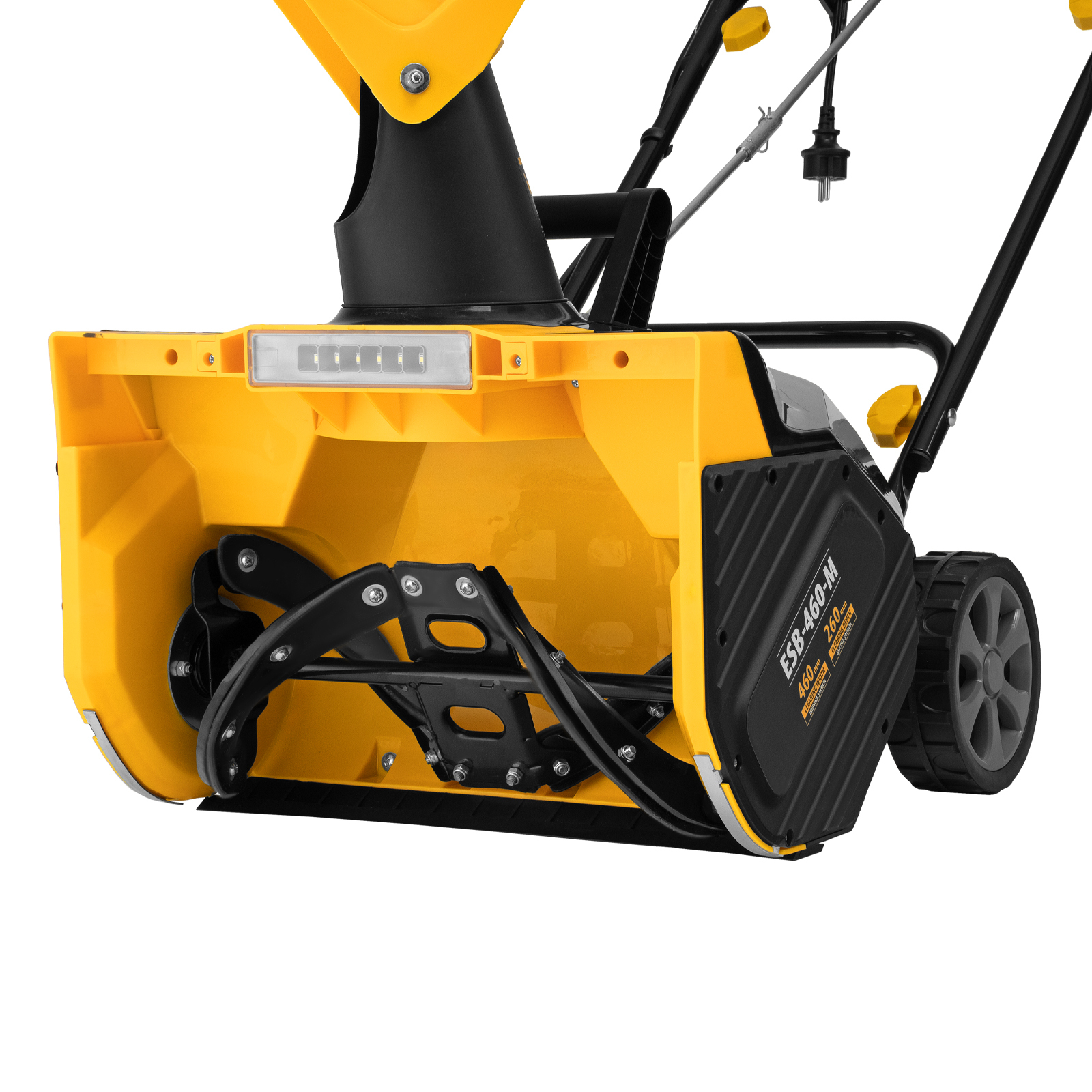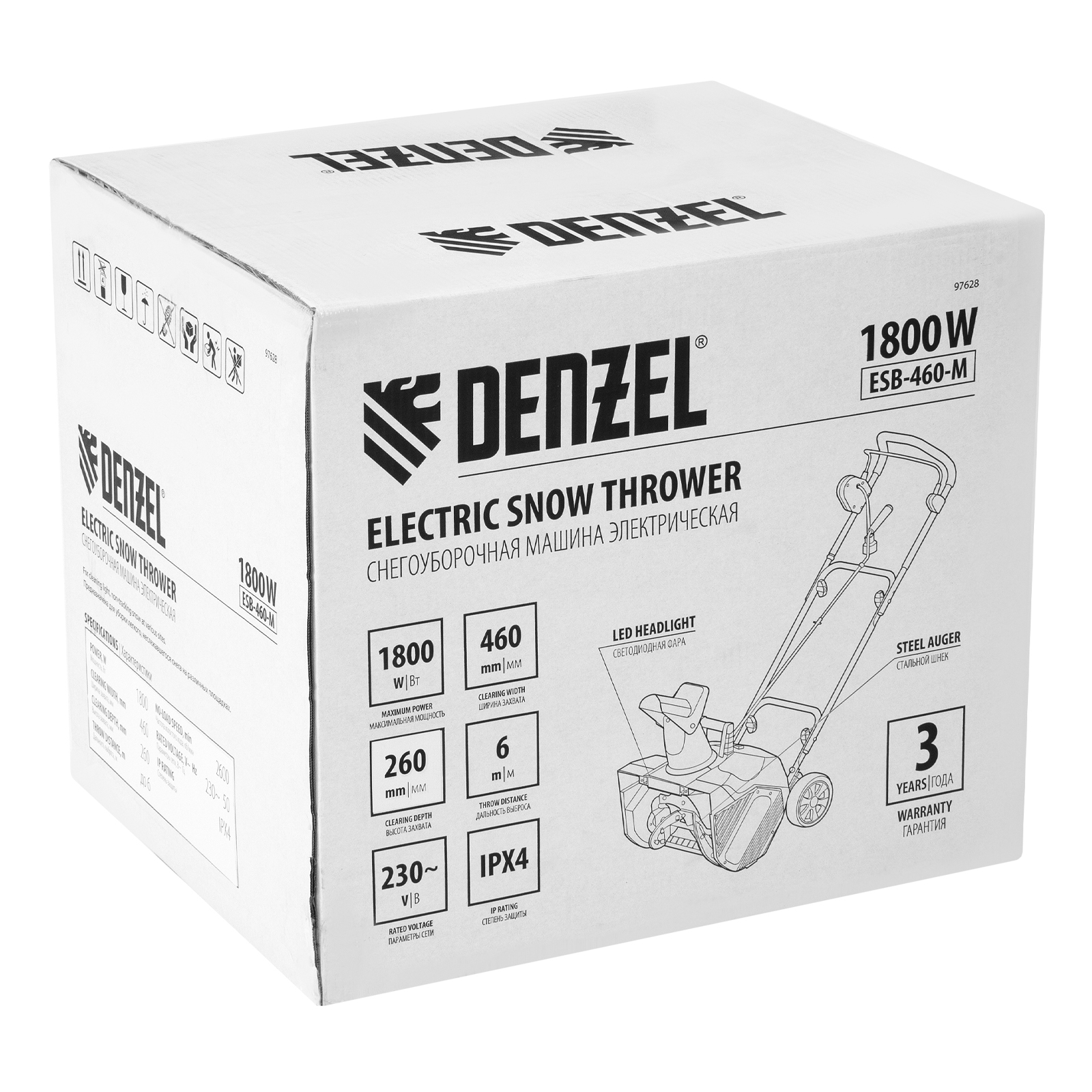 Электрическая снегоуборочная машина Denzel ESB-460-M 97628 мощностью 1,8 кВт, с металлическим шнеком и LED-фарой, предназначена для работы на ровных твердых поверхностях. Ширина захвата составляет 460 мм, что позволяет быстро справиться с работой. С помощью машины можно расчистить от снега небольшую площадку, дорожку, тротуар или автомобильную парковку.