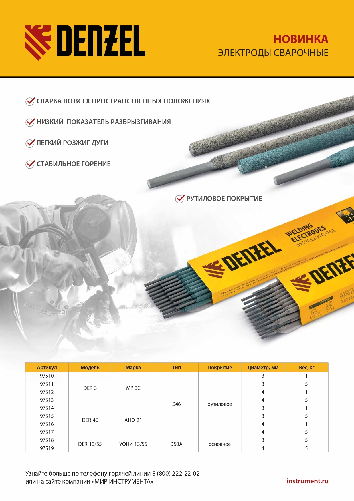 Электроды Denzel DER-13/55 97518 диаметром 3 мм, с основным покрытием серого цвета, 5 кг в упаковке, применяются для проведения сварочных работ с использованием постоянного тока обратной полярности. Предназначены для сварки толстых листовых деталей из углеродистых и низколегированных сталей, подвергающихся повышенным нагрузкам и деформационным воздействиям. Подходят для работы с емкостями под давлением. Сфера применения электродов — нефтегазовая и судостроительная промышленность. Перед началом работ требуется провести тщательную подготовку поверхности, поэтому электроды рекомендованы для профессионального использования.