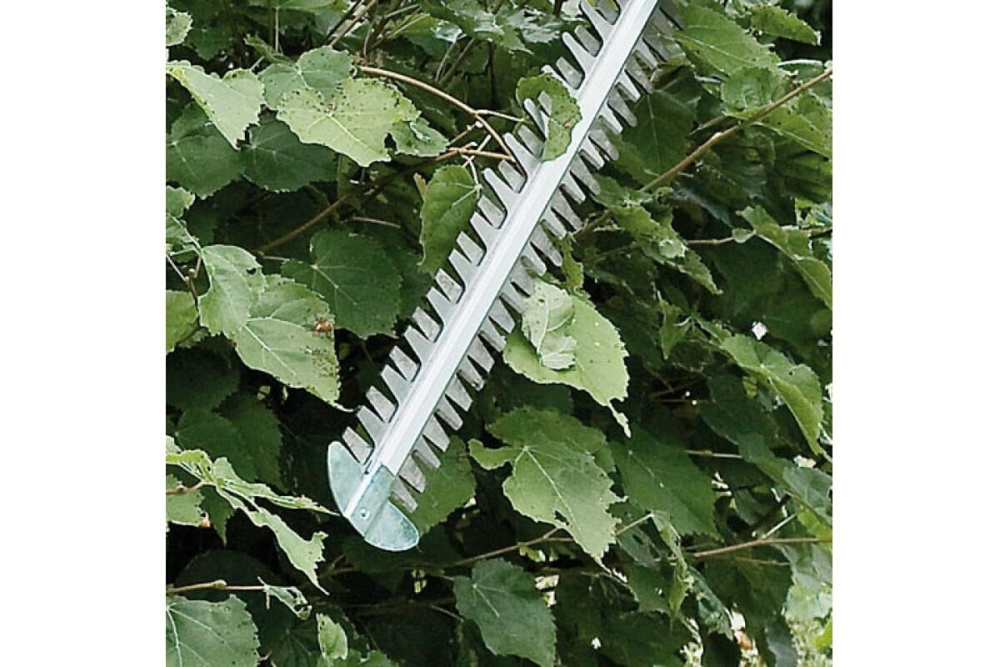 Инструмент оснащен длинным двухсторонним ножом для эффективной работы с обширными насаждениями.