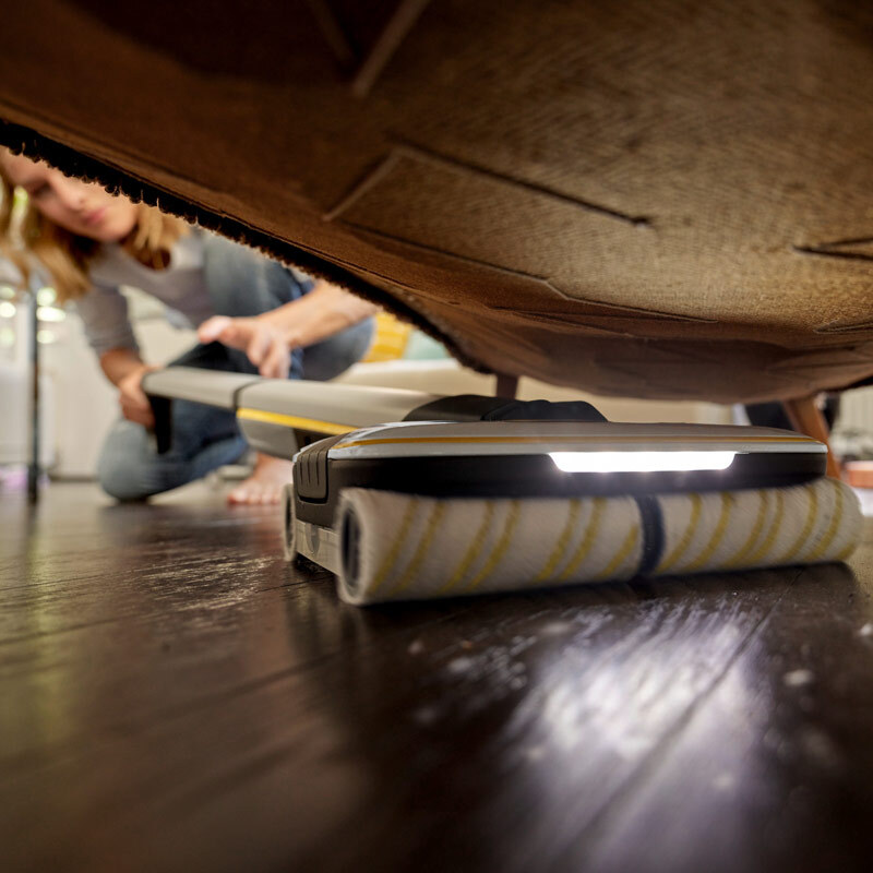 Многофункциональный аккумуляторный аппарат Karcher FC 7 Cordless Plus с подсветкой в чистящей насадке удаляет любые виды сухой и влажной грязи с пола без предварительной очистки пылесосом. Технология встречного вращения четырёх валиков обеспечивает высокую скорость уборки, а специальные фильтры надёжно задерживают волосы и шерсть.