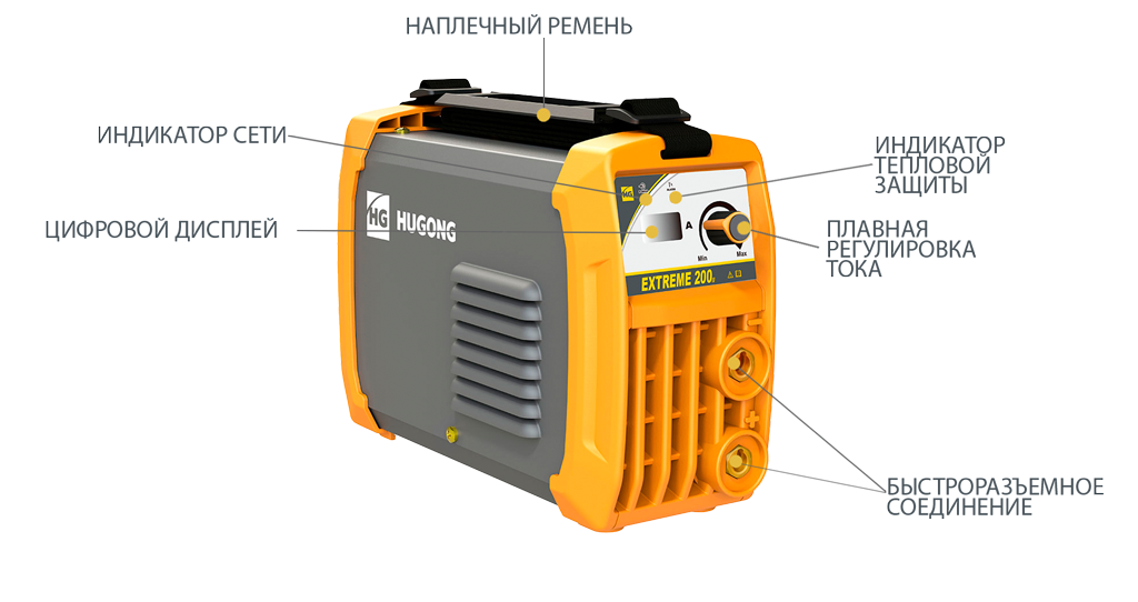EXTREME 200 III - Инверторный сварочный аппарат предназначен для Ручной Дуговой Сварки покрытым электродом. Реально выдаваемый сварочный ток 200А позволит Вам работать с широким спектром различных материалов: низколегированных, высоколегированных, малоуглеродистых, нержавеющих сталей, чугуна и их сплавов, а также использовать электроды различного типа (рутиловые и основные) от 1,6 мм до 4 мм. При этом Вы можете 8 мин без перерыва сваривать максимальным электродом 4 мм до срабатывания термозащиты, то есть фактическая продолжительность включения составляет 80%. Информация о подборе электродов для определенной толщины металла и выборе величины сварочного тока представлена в таблице.