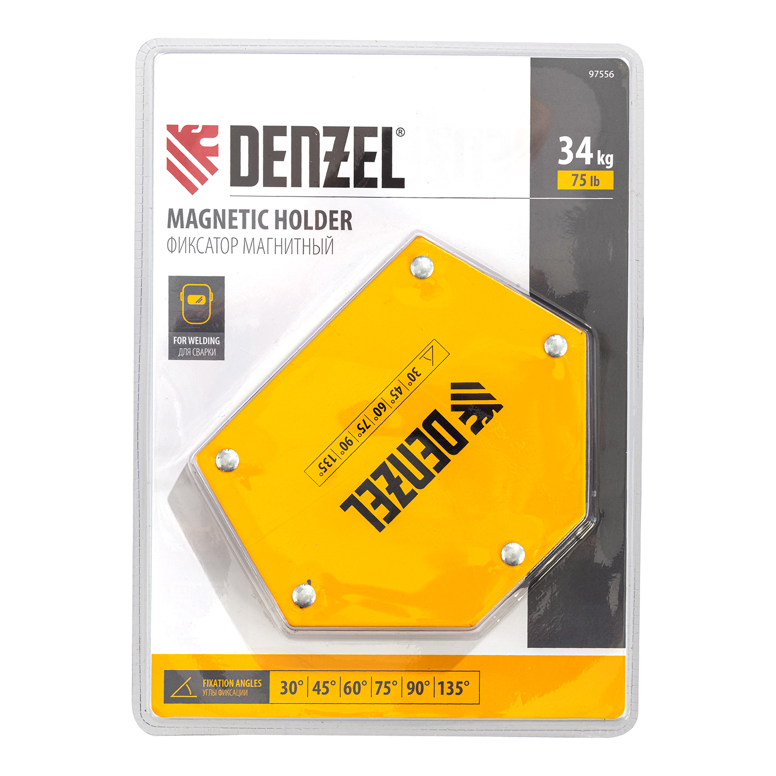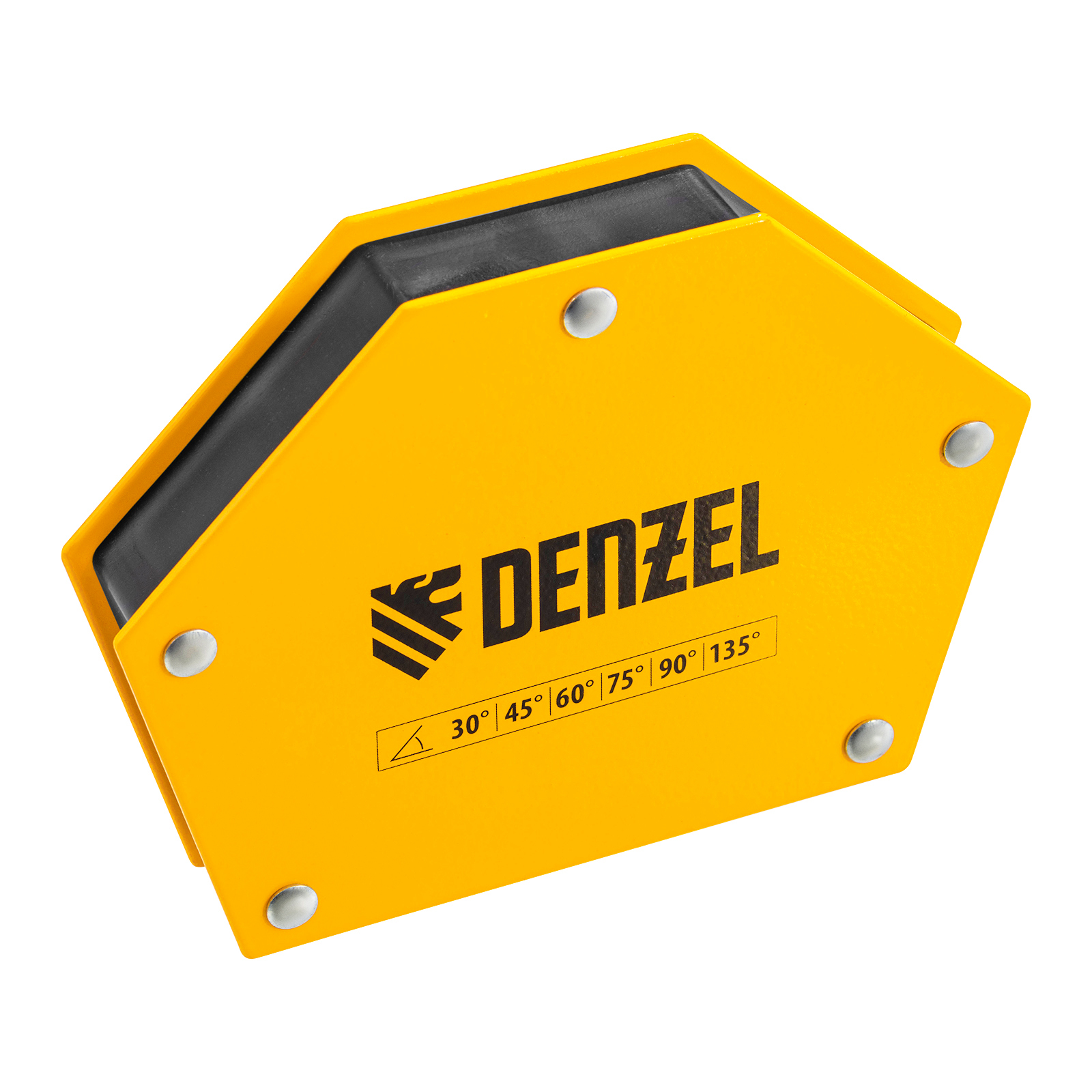 Фиксатор магнитный Denzel 97556 выдерживает усилие 75 LB (34 кг), позволяет соединять металлические детали разного размера под углом 30°, 45°, 60°, 75°, 90° и 135° и используется при проведении сварочных работ.