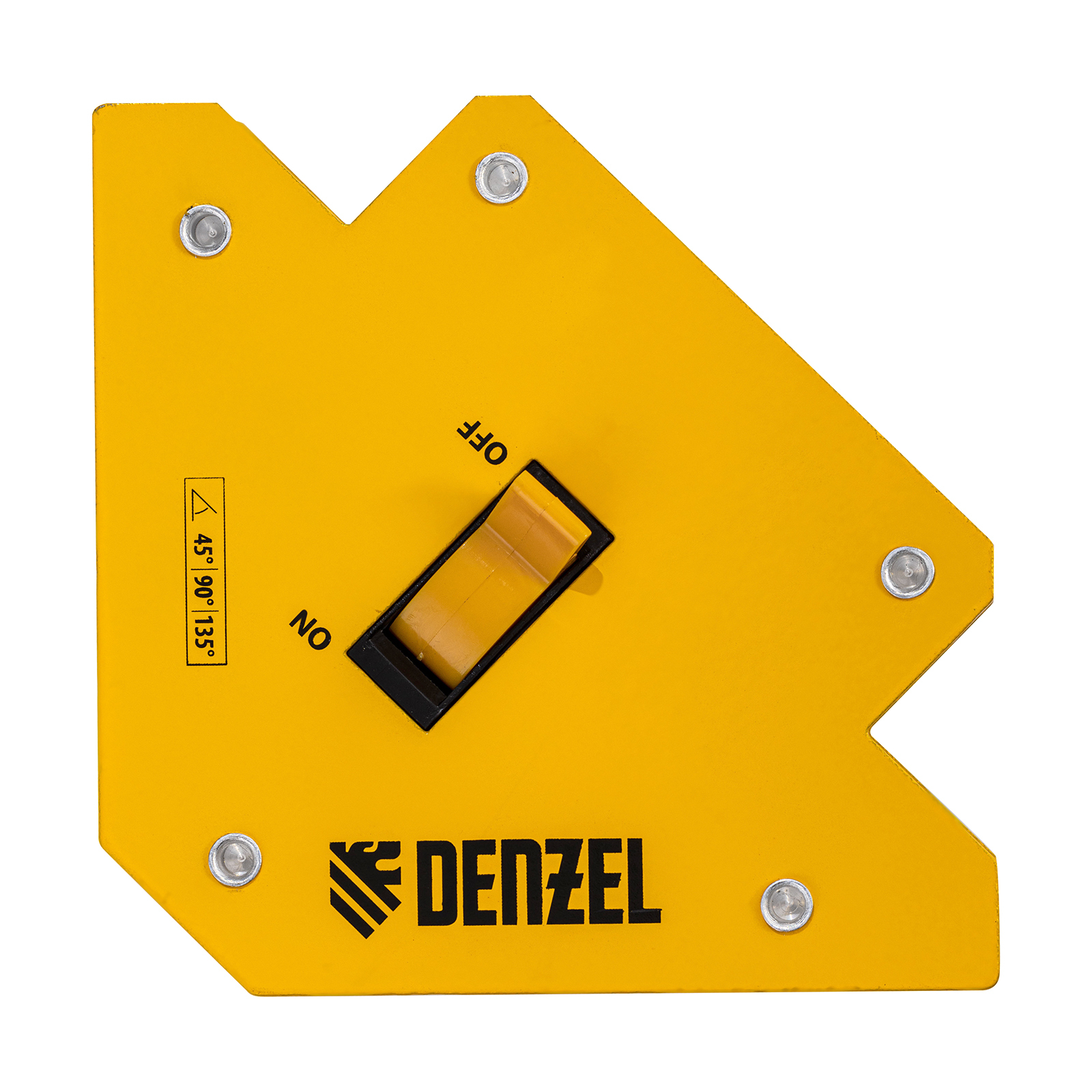 Фиксатор магнитный отключаемый для сварочных работ Denzel 97563 выдерживает усилие 30 LB (14 кг) и способен удерживать металлические предметы под углом 45°, 90°, 135°. Применяется при пайке, сварке, монтаже уголков, труб, профилей и других конструкций. Магнитное поле при необходимости отключается, что упрощает установку фиксатора и его снятие.