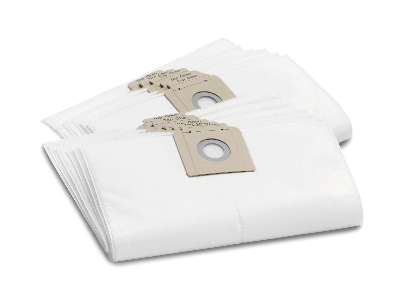 В одной упаковке 10 флисовых трехслойных фильтр-мешков для пылесосов Karcher T 10/1, T 12/1, прочные на разрыв, для пыли категории M.