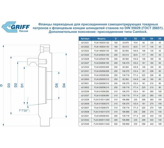 В том числе может быть использован с токарными патронами GRIFF артикул b208070 и b208270.