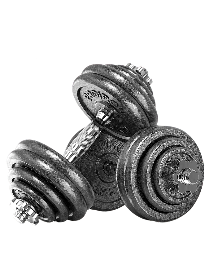 Гантели разборные PROIRON – это универсальный и стильный спортивный инвентарь для вашего домашнего тренировочного зала. Этот надежный комплект спортивных товаров подходит для многочисленных видов тренировок и занятий спортом и является идеальным решением для ваших силовых тренировок. Этот спортинвентарь удовлетворит потребности как мужчин, так и женщин в вашем домашнем тренировочном зале. Диски имеют посадочный размер 26 мм и предназначены для грифов с диаметром резьбой части в 25 мм.