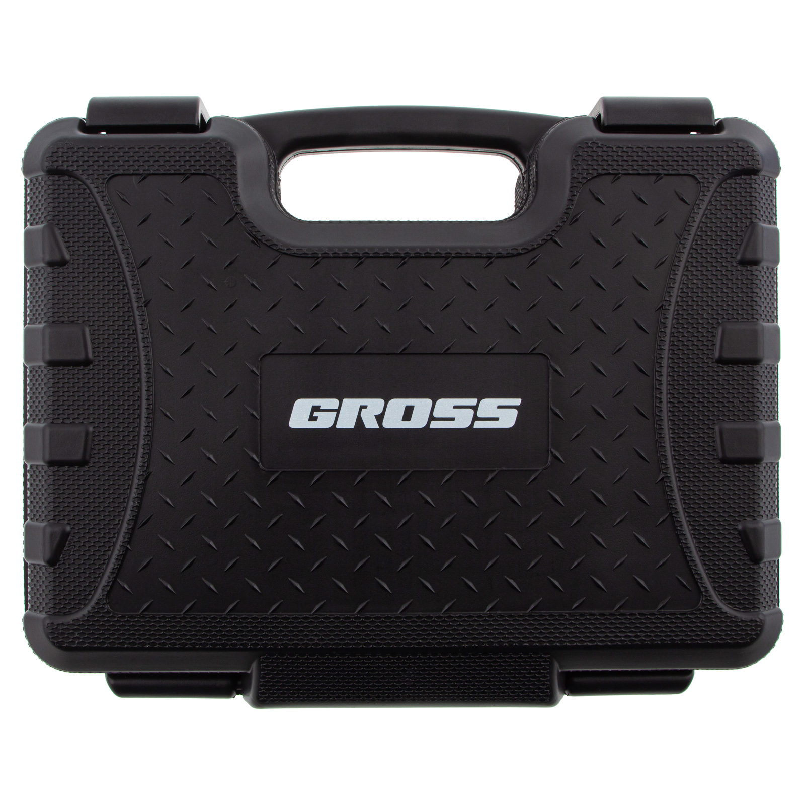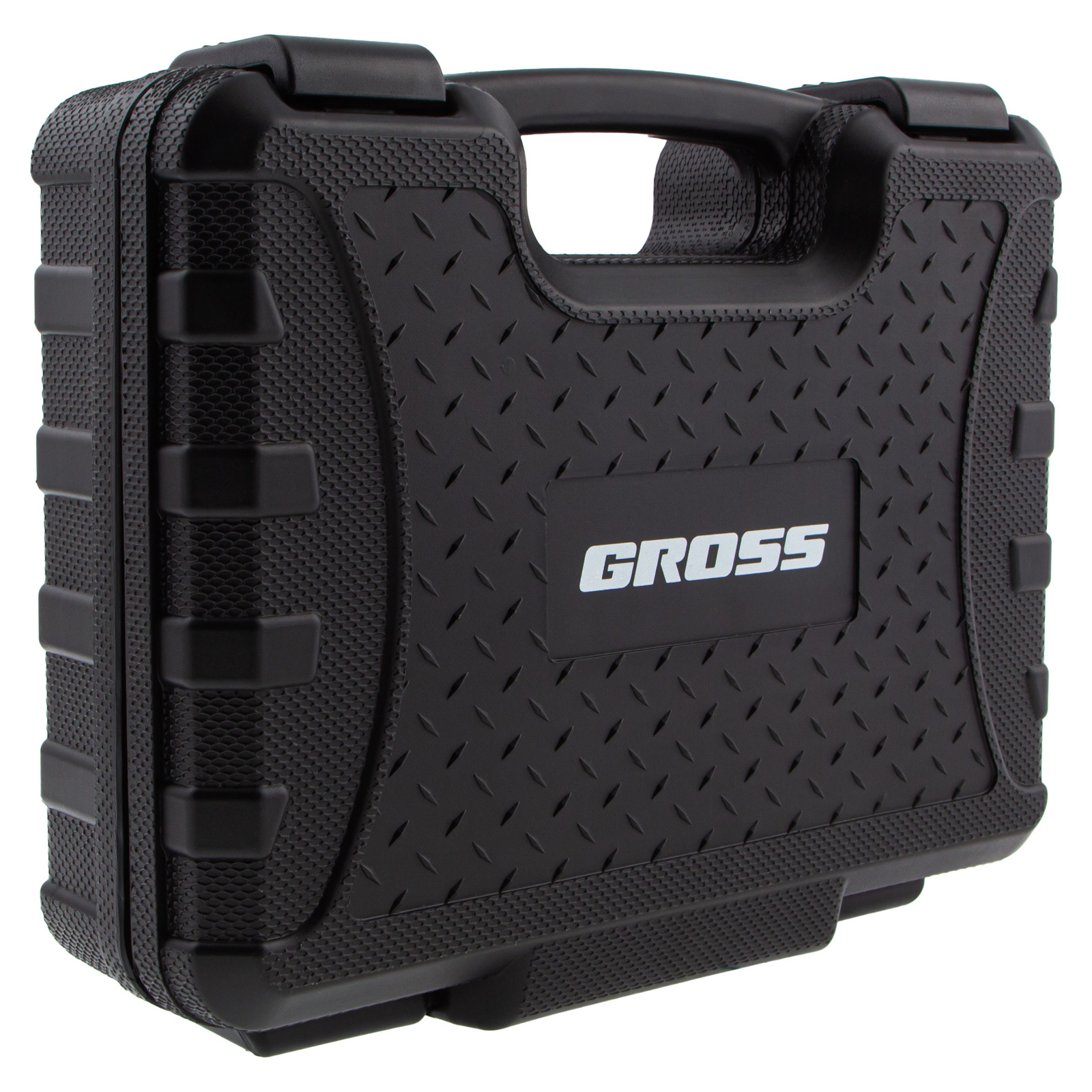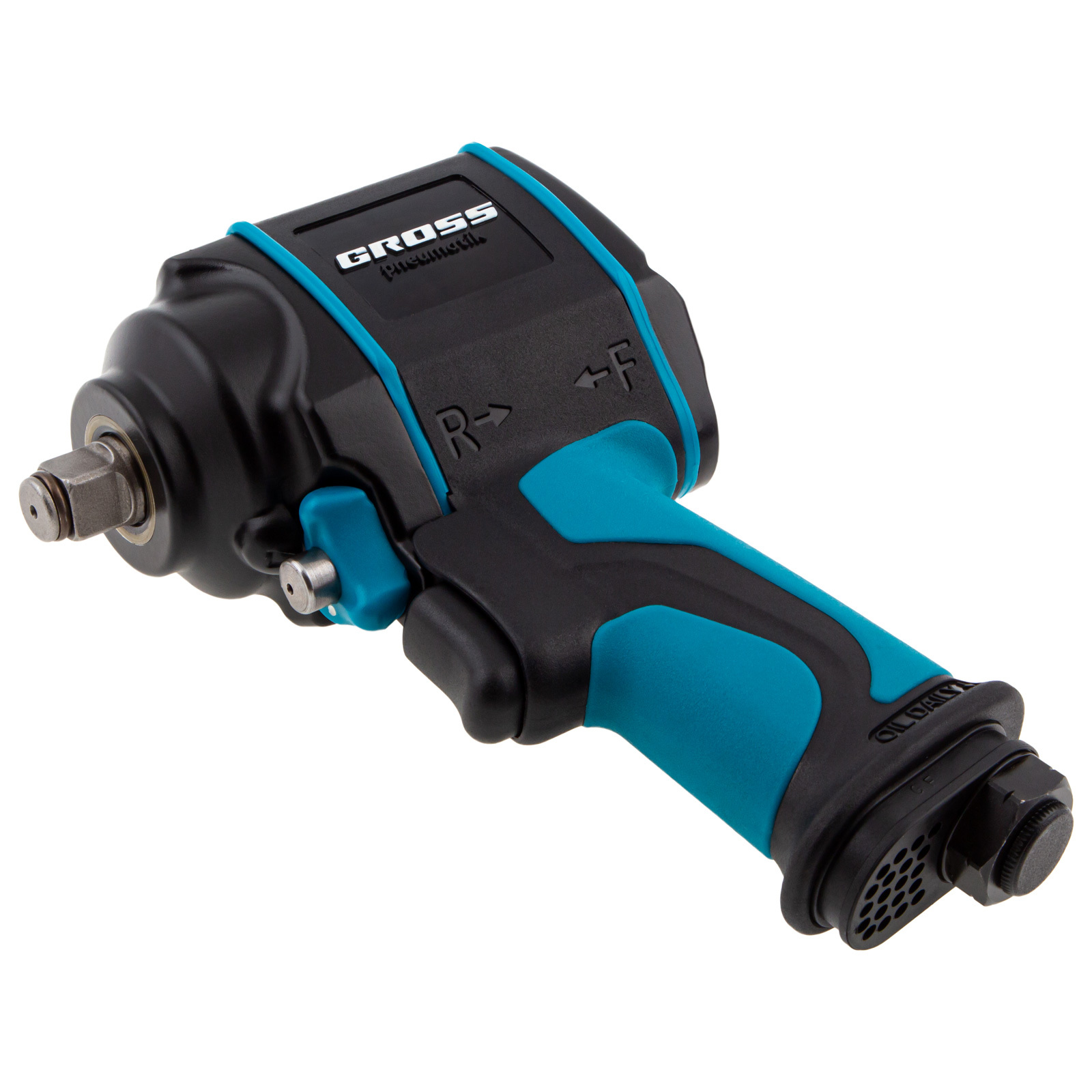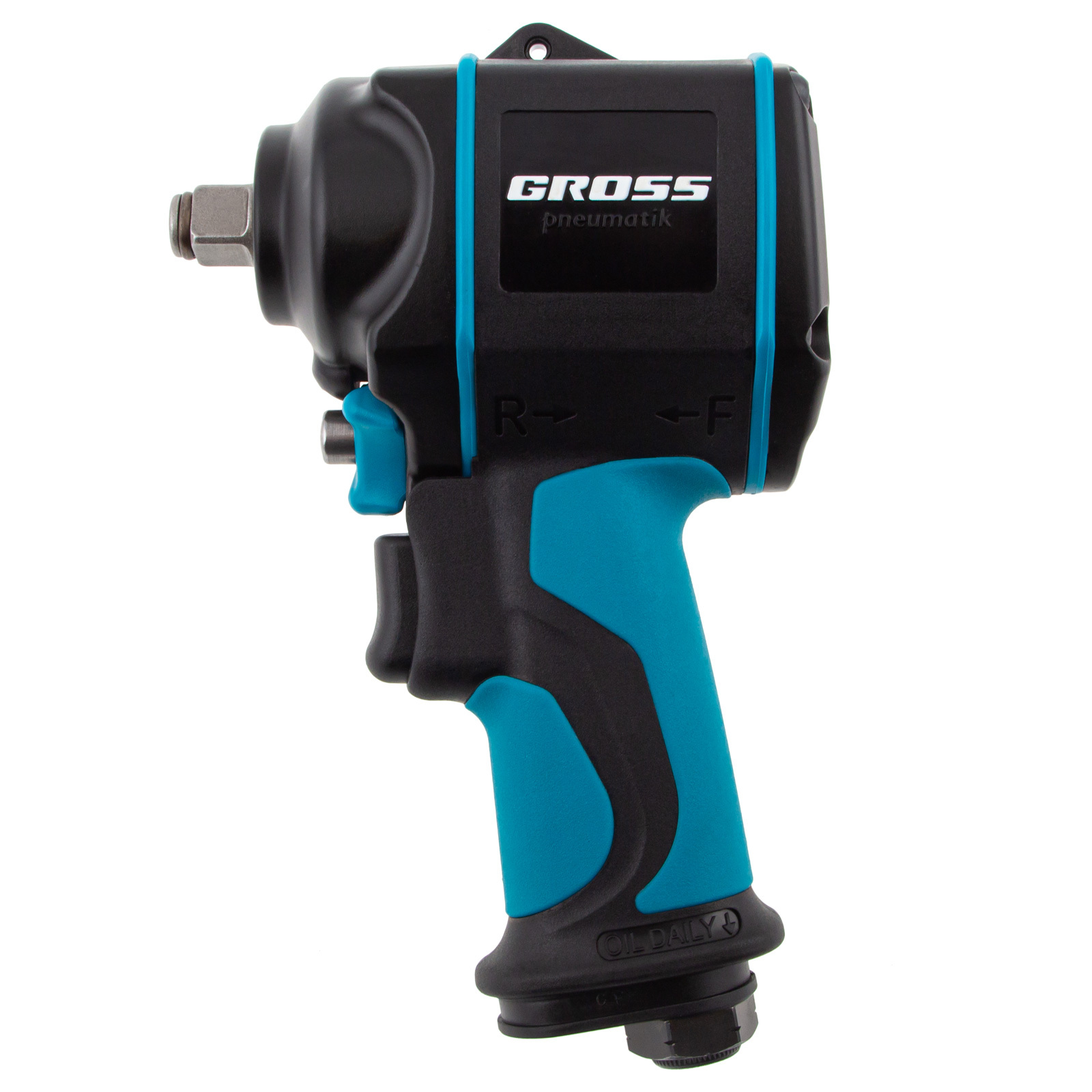 Пневматический ударный гайковерт Gross G985K2 57445 с максимальным крутящим моментом 610 Нм и присоединительным квадратом 1/2″, с частотой вращения шпинделя 9000 об/мин, входит в набор из 17 предметов и упрощает закручивание/раскручивание резьбовых высоконагруженных соединений на винтах, болтах и гайках. Для него подойдет маломощный компрессор, т.к. инструмент расходует небольшое количество воздуха от 120 л/мин. Гайковерт применяется как в быту, так и в профессиональной сфере — в гараже, сборочном цехе, автосервисе, на строительной площадке.