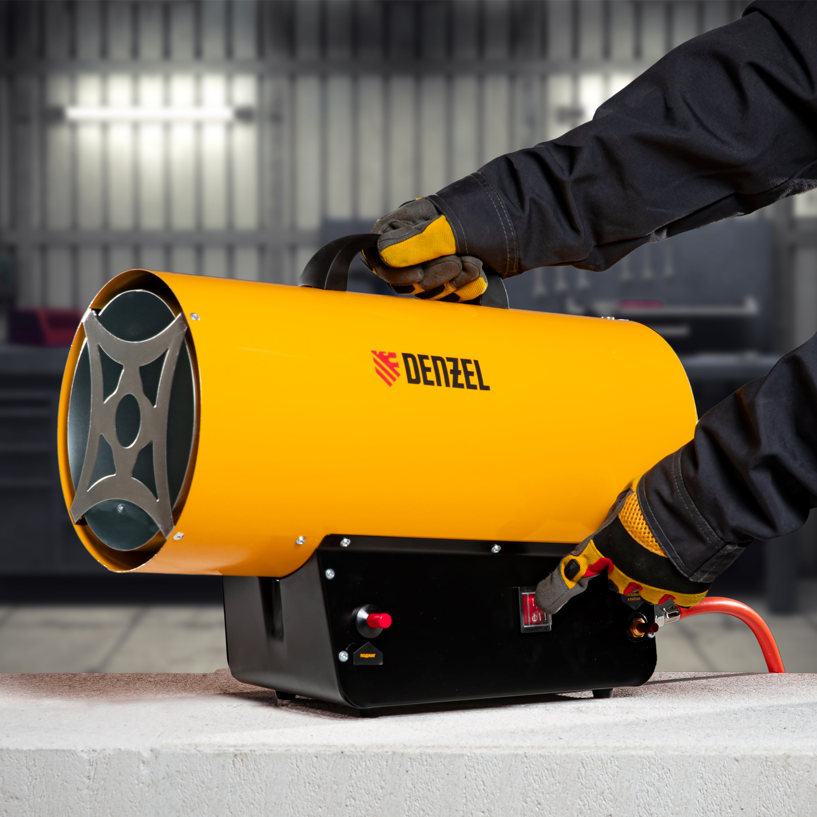 Газовая тепловая пушка Denzel GHG-30 96479 мощностью 30 кВт работает на смеси пропан-бутан и выдает тепловой поток со скоростью 900 куб. м/ч. Используется для обогрева складов, цехов, гаражей, теплиц и других нежилых помещений площадью до 300 кв. м. Будет полезна на строительных площадках и в производственных помещениях.