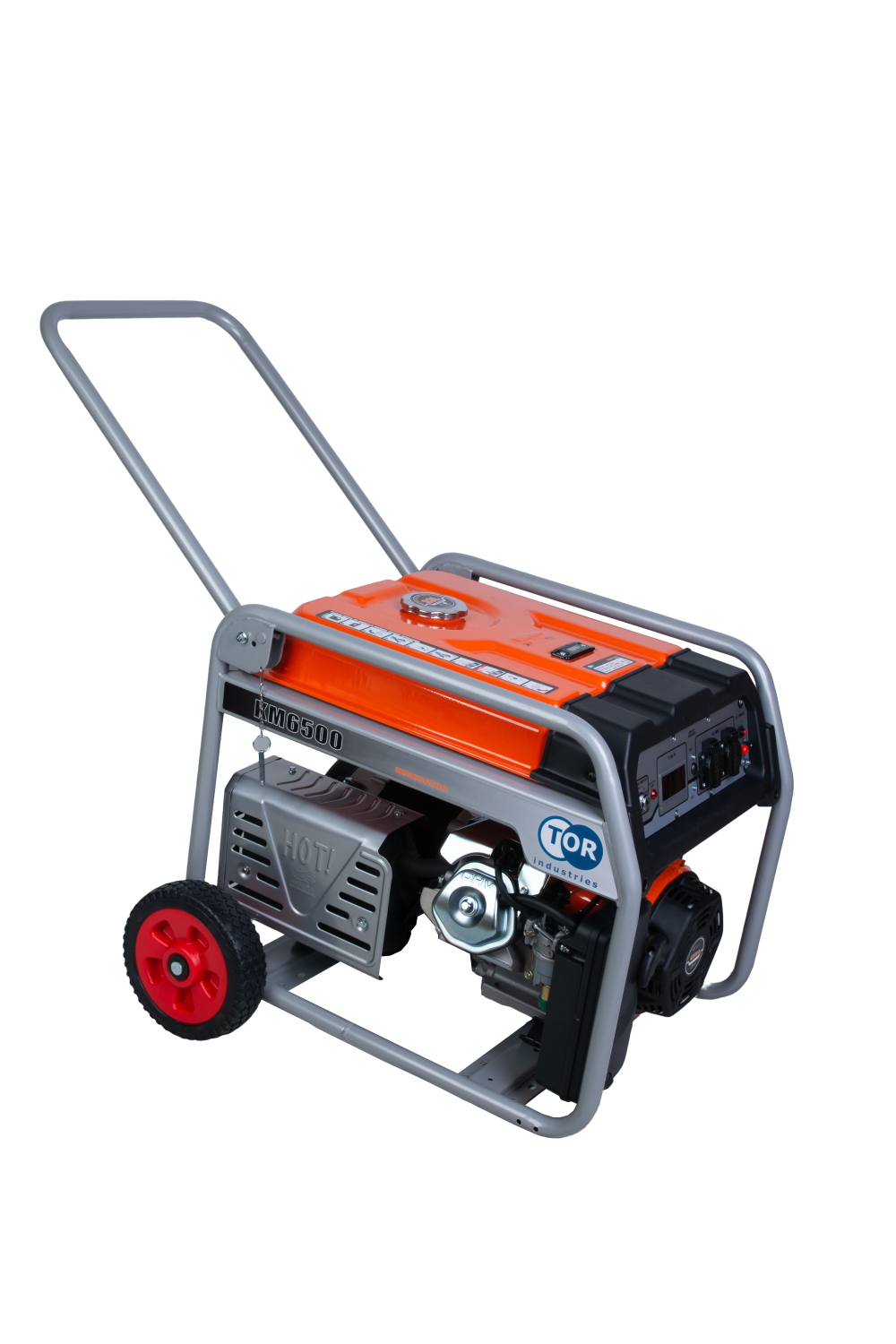 Генератор бензиновый TOR KM6500H 5,0 кВт, 220 В, 27 л, с электростартером и колесами - универсальный агрегат с электрозапуском и колесами для максимального комфорта.