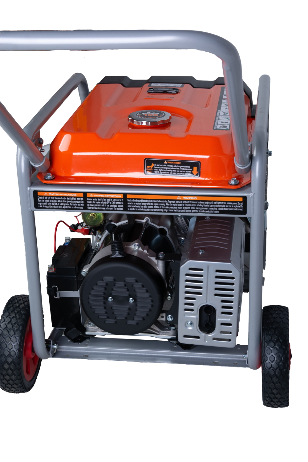 Электростартер обеспечивает мгновенный запуск, а колеса — легкое перемещение по территории.