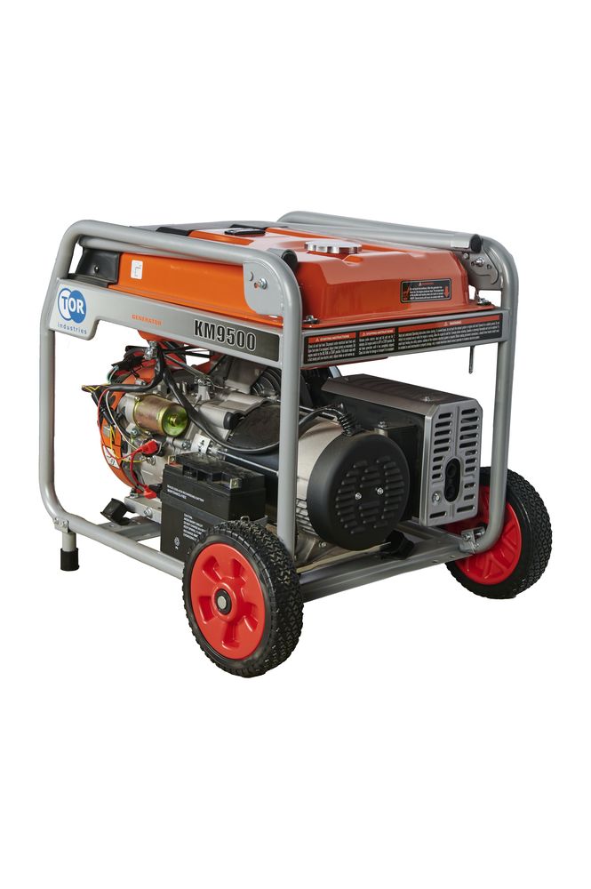 Генератор бензиновый TOR KM9500H 7,0 кВт, 220 В, 27 л, с электростартером и колесами -высокопроизводительный агрегат для тяжелых нагрузок.