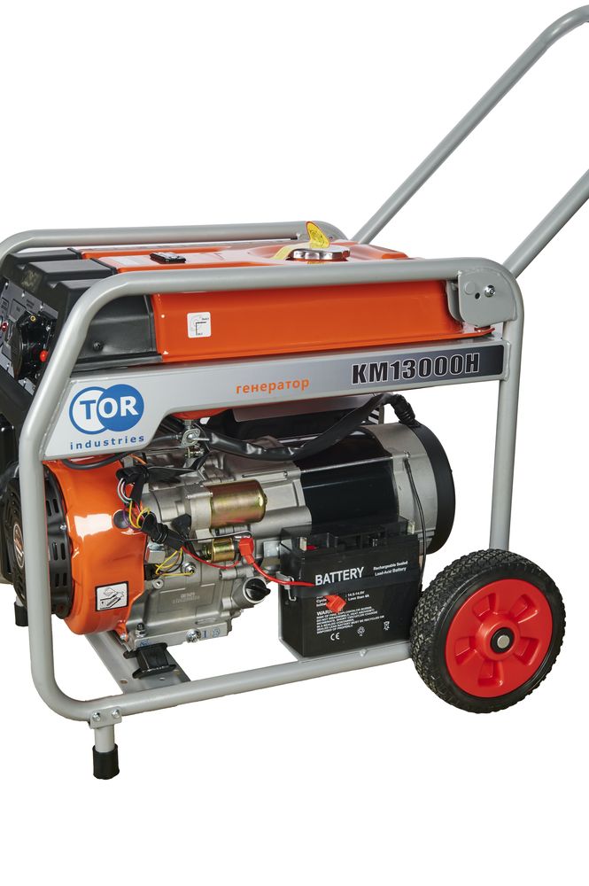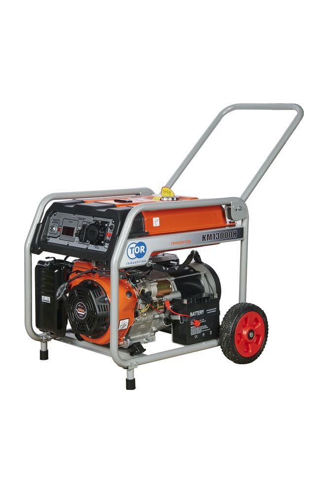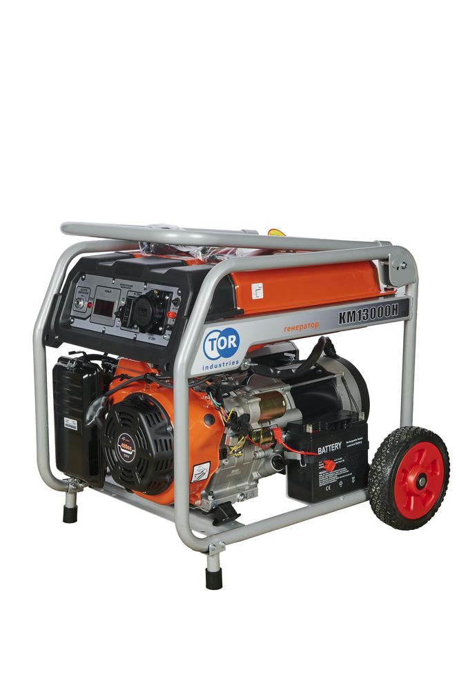 Генератор бензиновый TOR KM13000H 9,0 кВт, 220 В, 26 л, с электростартером и колесами - топовая модель линейки, созданная для решения задач повышенной сложности.