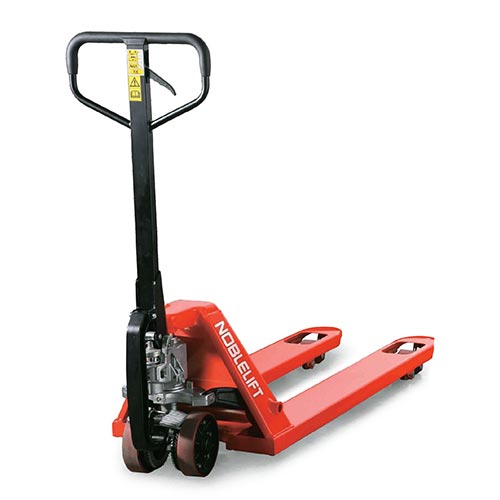 Ручная гидравлическая тележка типа рохля Noblelift AC20, предназначена для транспортировки паллет массой не более 2 тонн. Длина вил в стандартной комплектации составляет 1150 мм, для работы в стесненном пространстве (в кузове автомобиля, контейнере) есть комплектации с длиной вил 800 мм, 900 мм и 1000 мм.