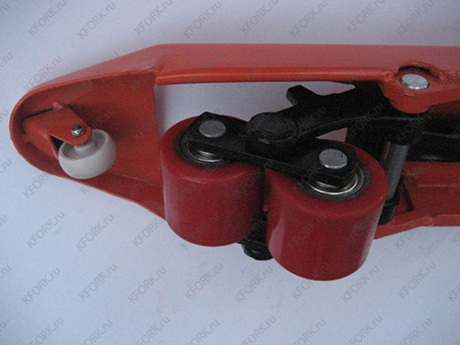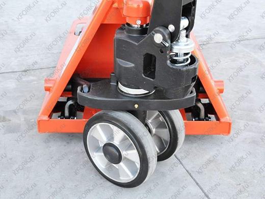 Ручная тележка AC 25 B имеет грузоподъемность 2500 кг, стандартную длину вил 1150 мм, рулевое колесо сдвоенное, изготовленное из высококачественного полиуретана, 2 ролика на виле, плюс подкатной ролик для удобства обработки паллет и преодоления неровностей.