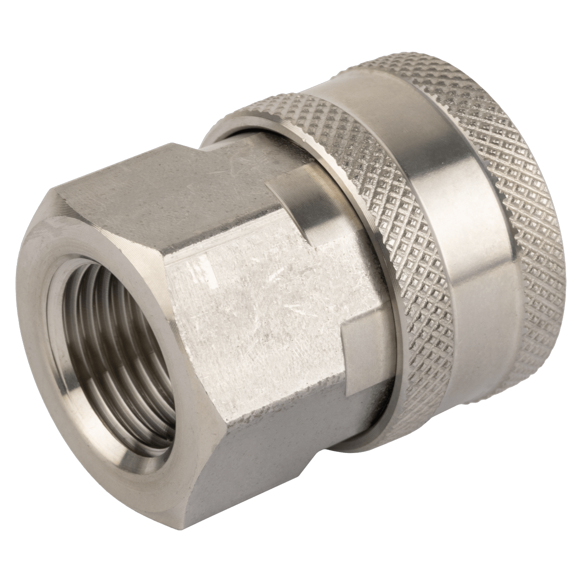 Штекер высокой пропускной способности для соединения пневматических магистралей с большим сечением шланга HRS-600TSFS применяется для подключения пневматического инструмента и оборудования, соединения различных элементов. С одной стороны, фитинг имеет быстроразъёмное соединение типа рапид «мама», с другой – внутреннюю резьбу 3/4″F. Разъем «мама» подсоединяется к подходящему разъему типа «папа».