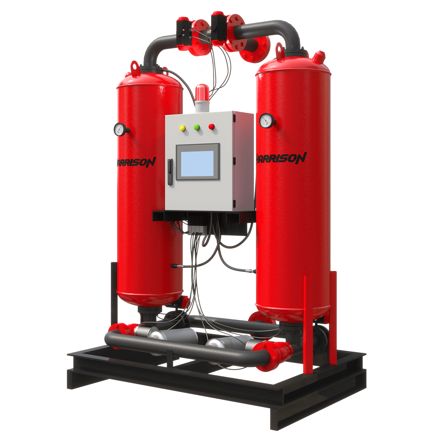 Два адсорбционных резервуара — один резервуар находится в процессе осушения, в то время как другой проходит регенерацию.