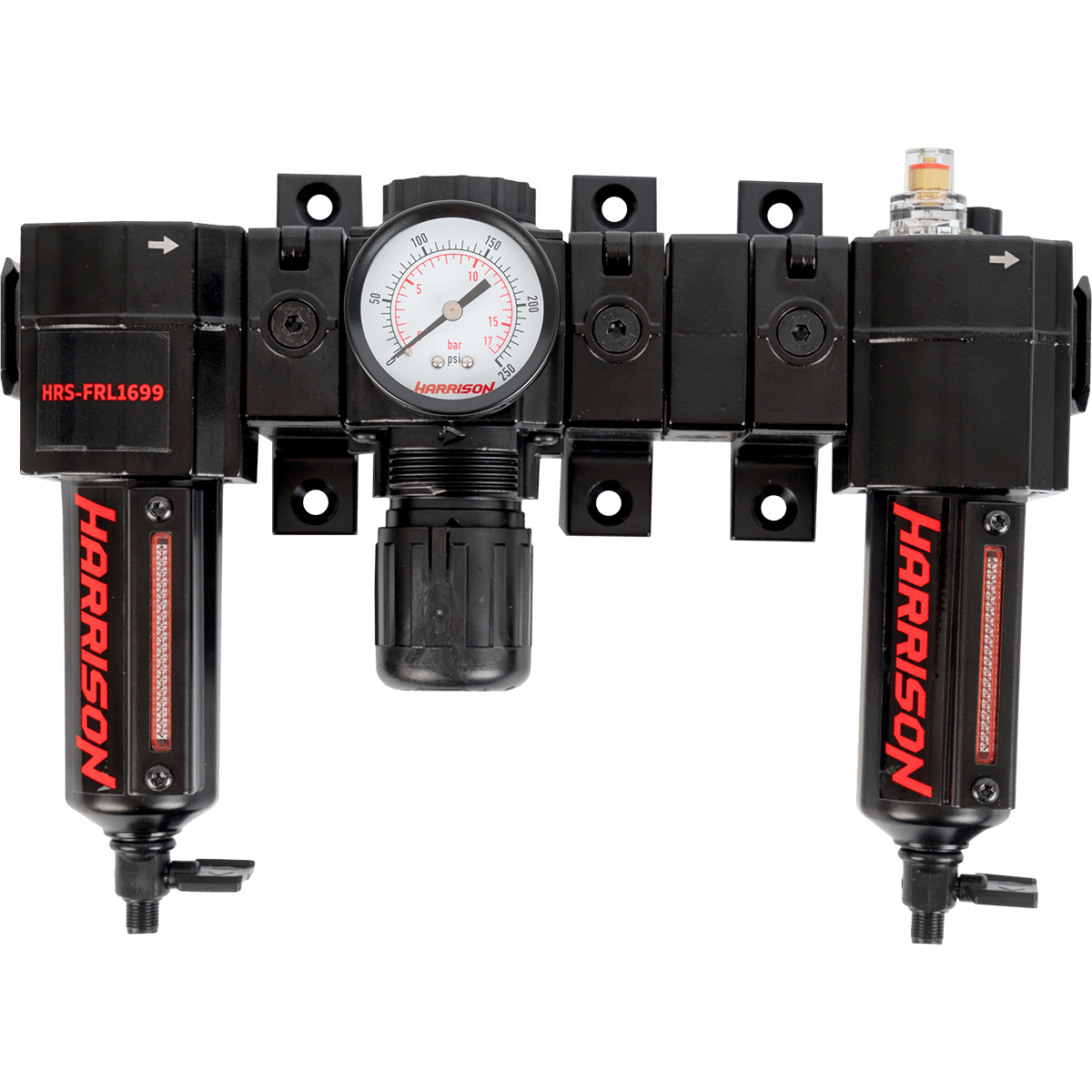 Блок подготовки с фильтром, регулятором и лубрикатором.