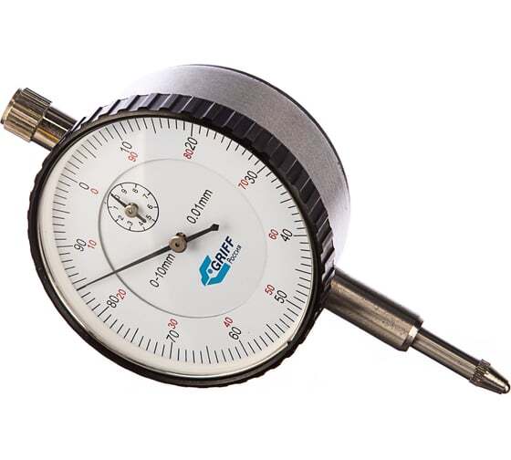 Индикатор (класс 1, ГОСТ 577-68, с ушком) GRIFF ИЧ10 D107108 представляет собой инструмент для определения линейных размеров изделия. Измерения осуществляются относительным и абсолютным методами. Высокая точность обеспечивает качественный замер.