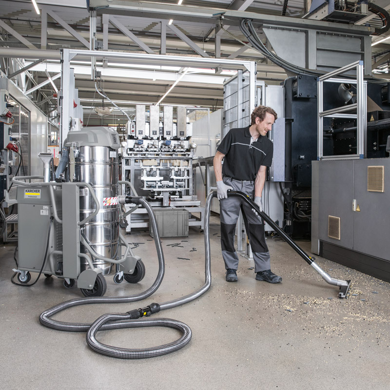 Пылесос экстра-класса влажной и сухой уборки Karcher IVS 100/55 М оснащен энергоэффективным (IE2) трехфазным электродвигателем с турбиной с боковым каналом впечатляет своей мощностью в 5,5 кВт. Данная версия позволяет подключить пульт дистанционного управления (опция).