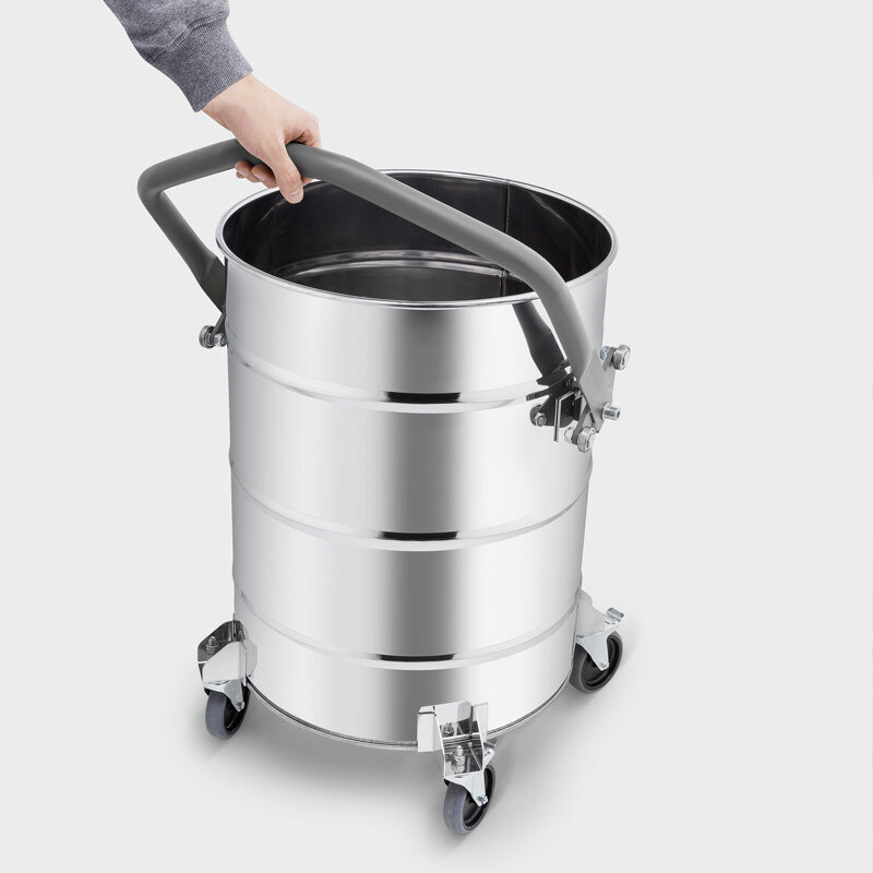 Модель имеет интегрированный манометр, показывающий необходимость очистки/замены фильтра. Удобный механизм отсоединения мусоросборника, практичная ручка и большие ролики позволяют легко перемещать бак с мусором даже по неровным полам.