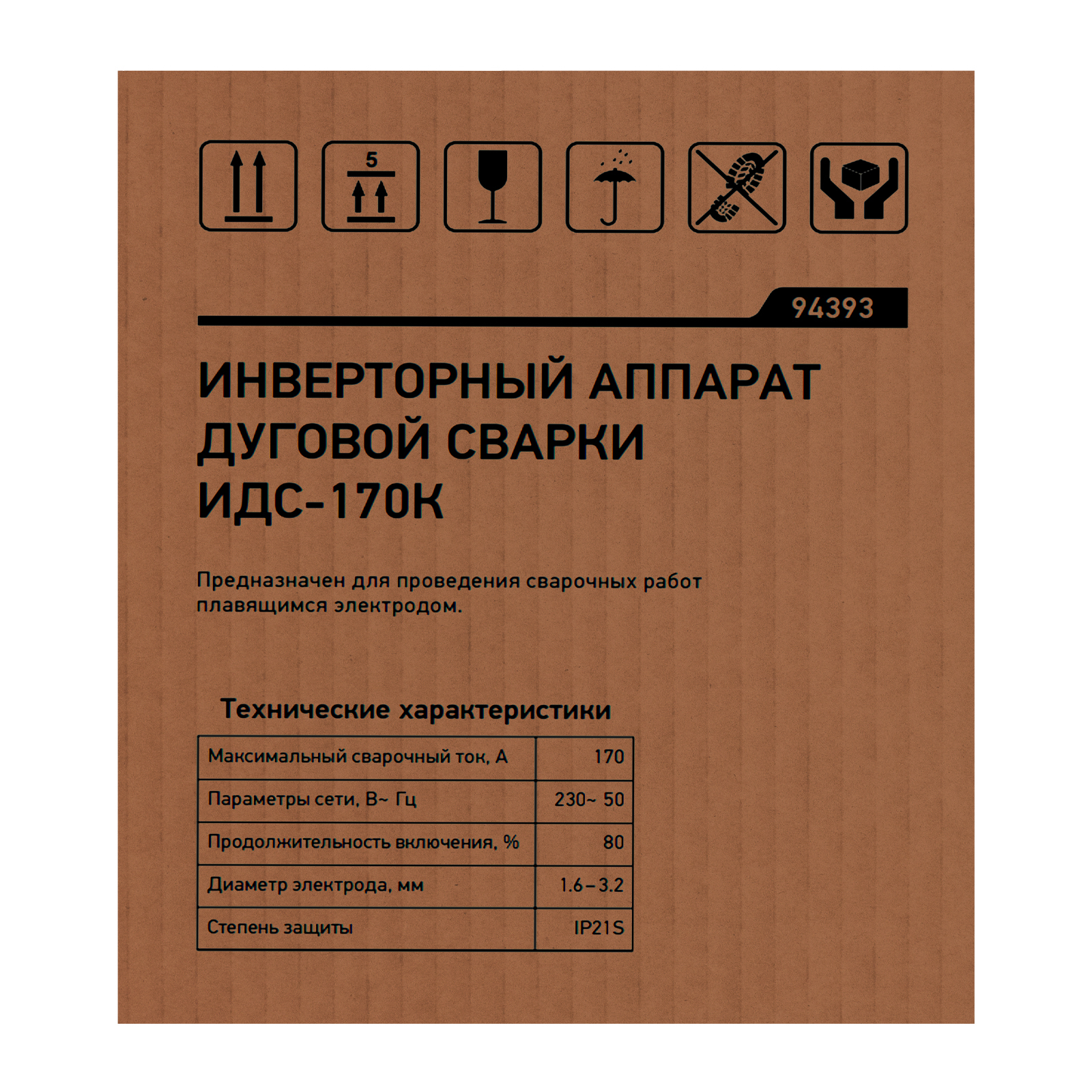 Инверторный аппарат Сибртех ИДС-170К 94393 подходит для использования в бытовых и производственных условиях. Используется для дуговой сварки изделий из низкоуглеродистой стали с помощью штучных электродов диаметром 1,6-3,2 мм. Диапазон сварочного тока составляет 20-170 А, продолжительность включения (ПВ) на максимальном токе 80% выгодно отличает данную модель. Аппарат не шумит, эффективно работает даже при нестабильном напряжении, оптимален для частных хозяйств, коммунальных служб, аварийно-ремонтных бригад.