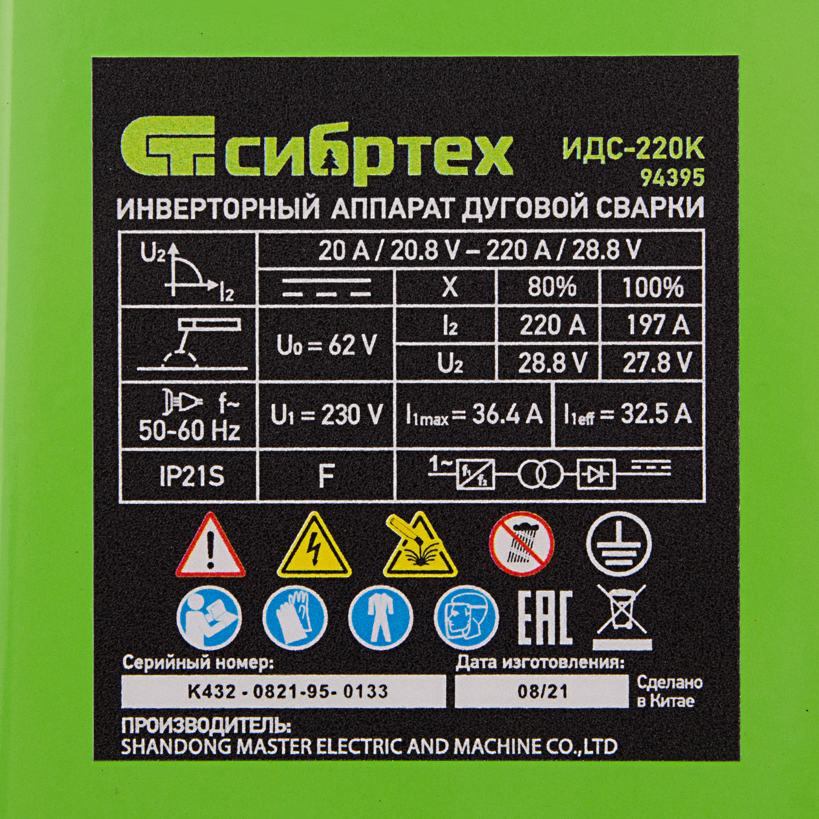 Инверторный аппарат Сибртех ИДС-220К 94395 подходит для использования в бытовых и производственных условиях. Используется для дуговой сварки изделий из низкоуглеродистой стали с помощью штучных электродов диаметром 1,6-5 мм. Диапазон сварочного тока составляет 20-220 А, продолжительность включения (ПВ) на максимальном токе 80% выгодно отличает данную модель. Аппарат не шумит, эффективно работает даже при нестабильном напряжении, оптимален для частных хозяйств, коммунальных служб, аварийно-ремонтных бригад.