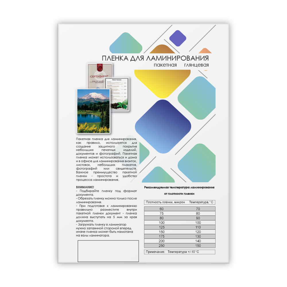 Пленка пакетная для ламинирования Размер 216х303 мм плотность 250 мик 100 штук в пачке. Подходит для ламинатора любой марки. Заламинированный материал защищен от механических воздействий (нежелательных надписей, потертостей), от влаги и выгорания цвета. Пленка придает бумаге презентабельный внешний вид, делает ее более жесткой. Чем больше мкм в пленке - тем жестче готовый материал. Данные офисные расходные принадлежности относятся к тонким пленкам.