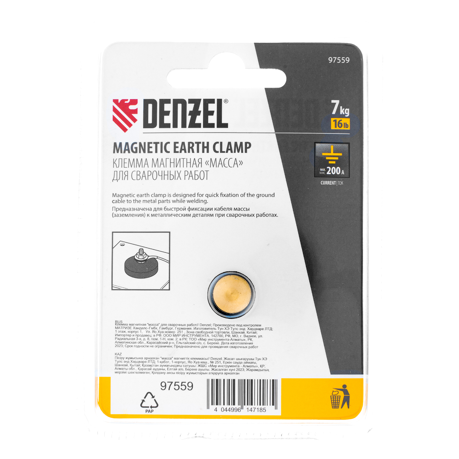 Магнитная клемма «масса» Denzel 97559 с максимальным током 200 А предназначена для соединения рабочего электрода с поверхностью обрабатываемого материала кабелем заземления. Она быстро и надежно крепится даже на изогнутые поверхности и обеспечивает замкнутую электрическую цепь, без которой невозможна ручная дуговая сварка. Клемма пригодится как начинающему, так и профессиональному сварщику при выполнении ремонтных работ и на строительной площадке.