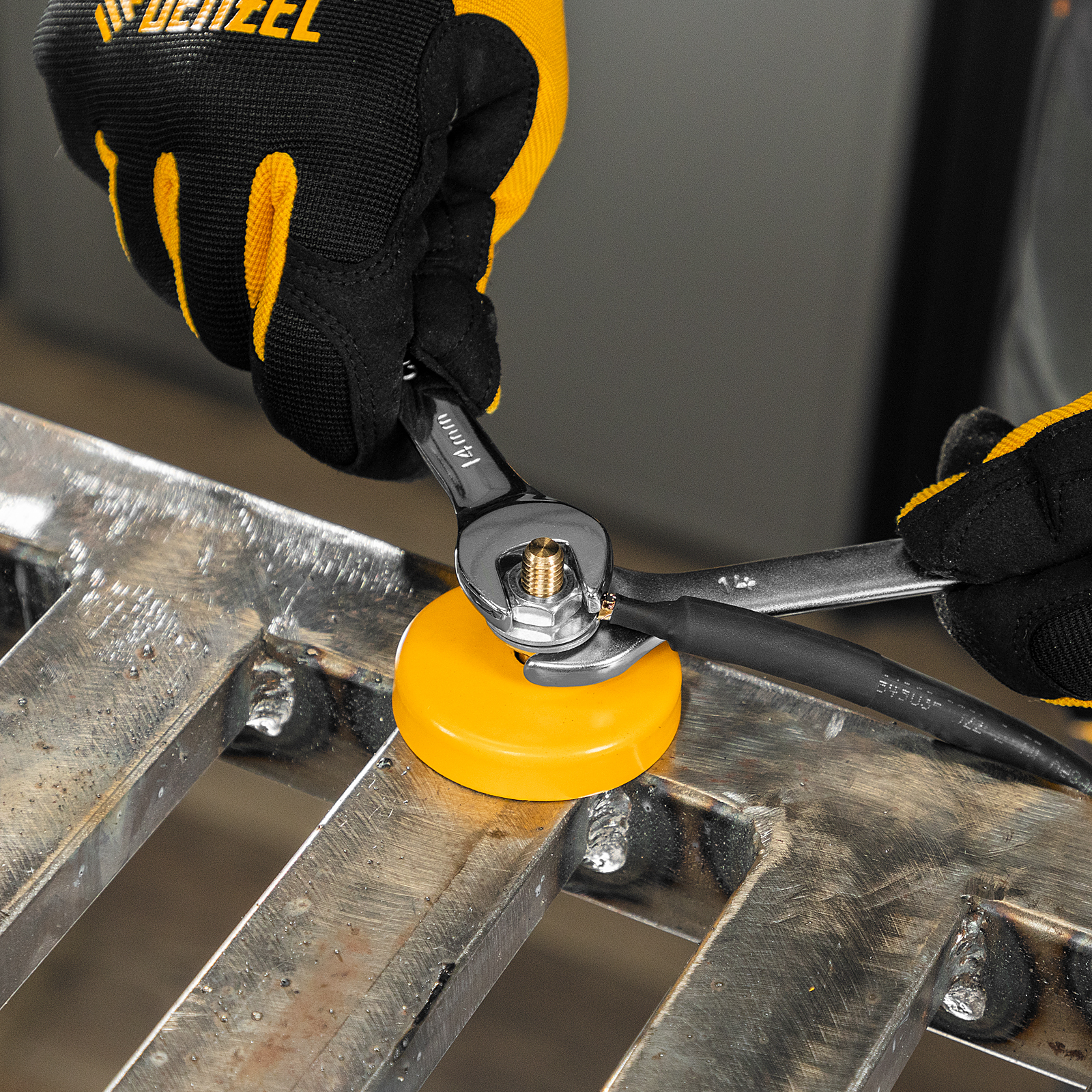 - Простота и удобство использования — для применения магнитной клеммы не требуется специальных навыков, достаточно зафиксировать ее на рабочей поверхности, и можно приступать к сварке.