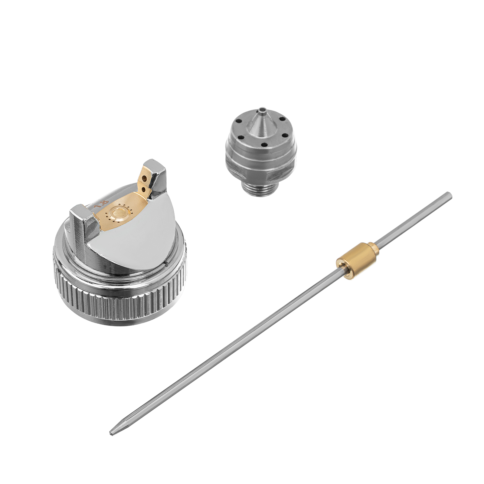- Сопло диаметром 1,8 мм подходит для распыления лаков, олифы, грунтовки, клея и красок, в том числе глянцевых.