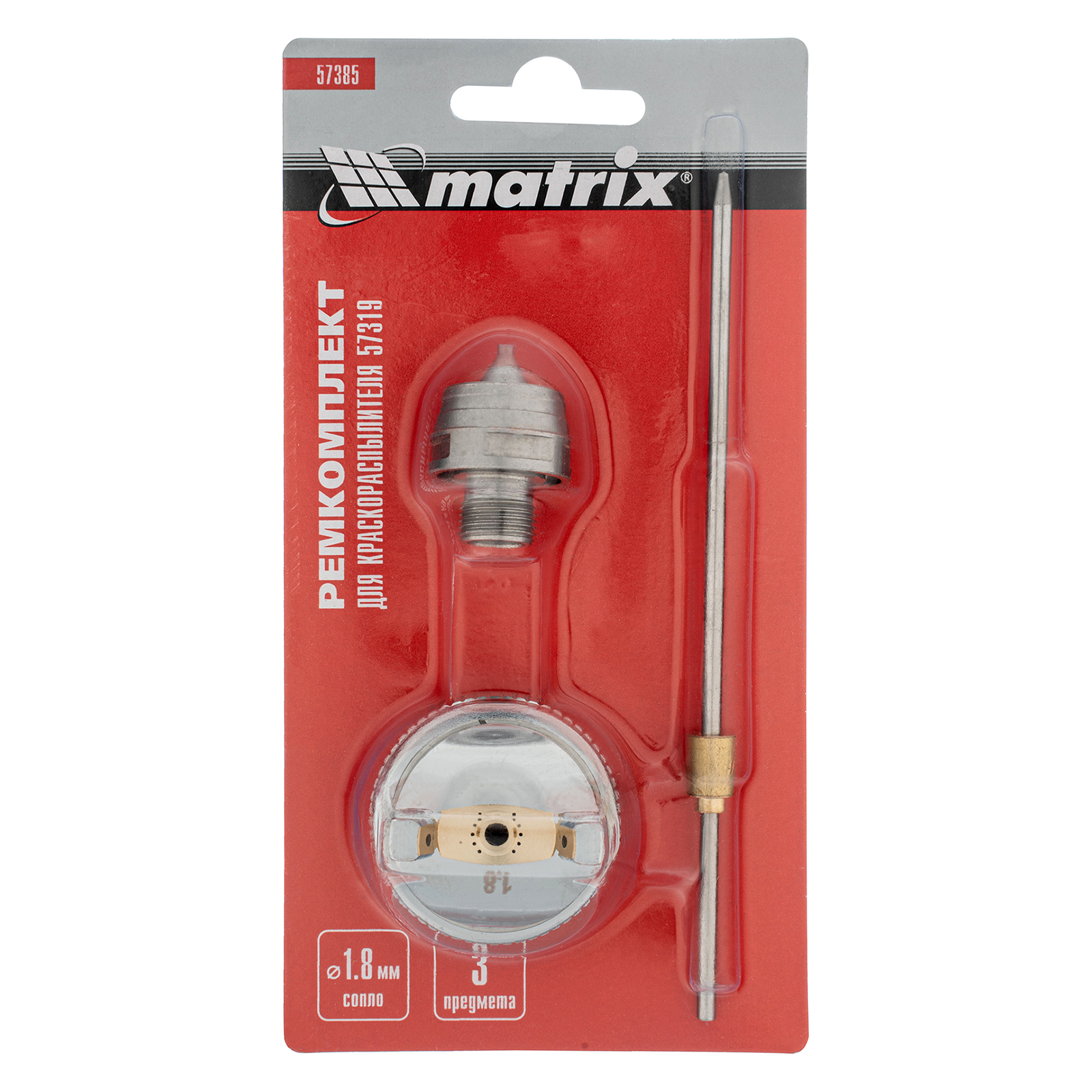 Комплект Matrix 57385 для краскораспылителя Matrix 57319 включает в себя 3 предмета: сопло диаметром 1,8 мм, иглу и форсунку. Их можно использовать для ремонта инструмента или расширения его функциональных возможностей.