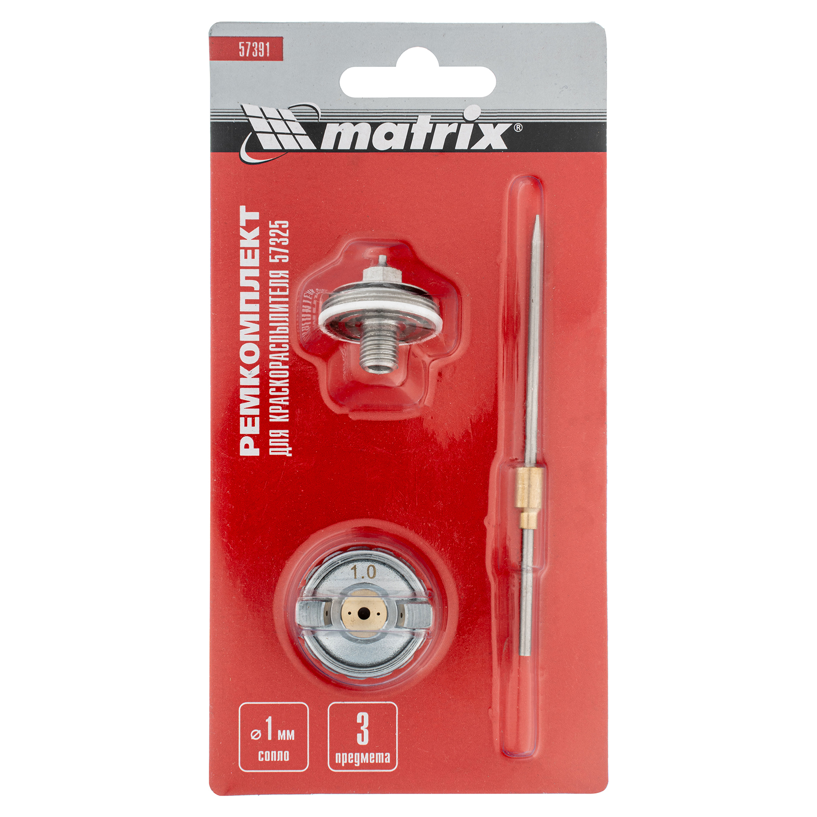 Комплект Matrix 57391 для краскораспылителя Matrix 57325 включает в себя 3 предмета: сопло диаметром 1 мм, иглу и форсунку. Их можно использовать для ремонта инструмента или расширения его функциональных возможностей.