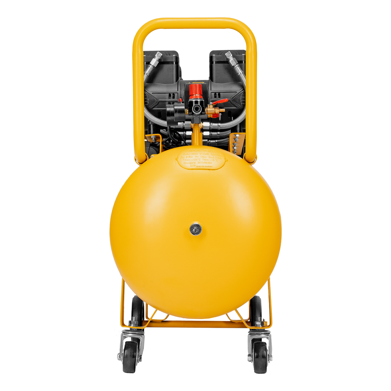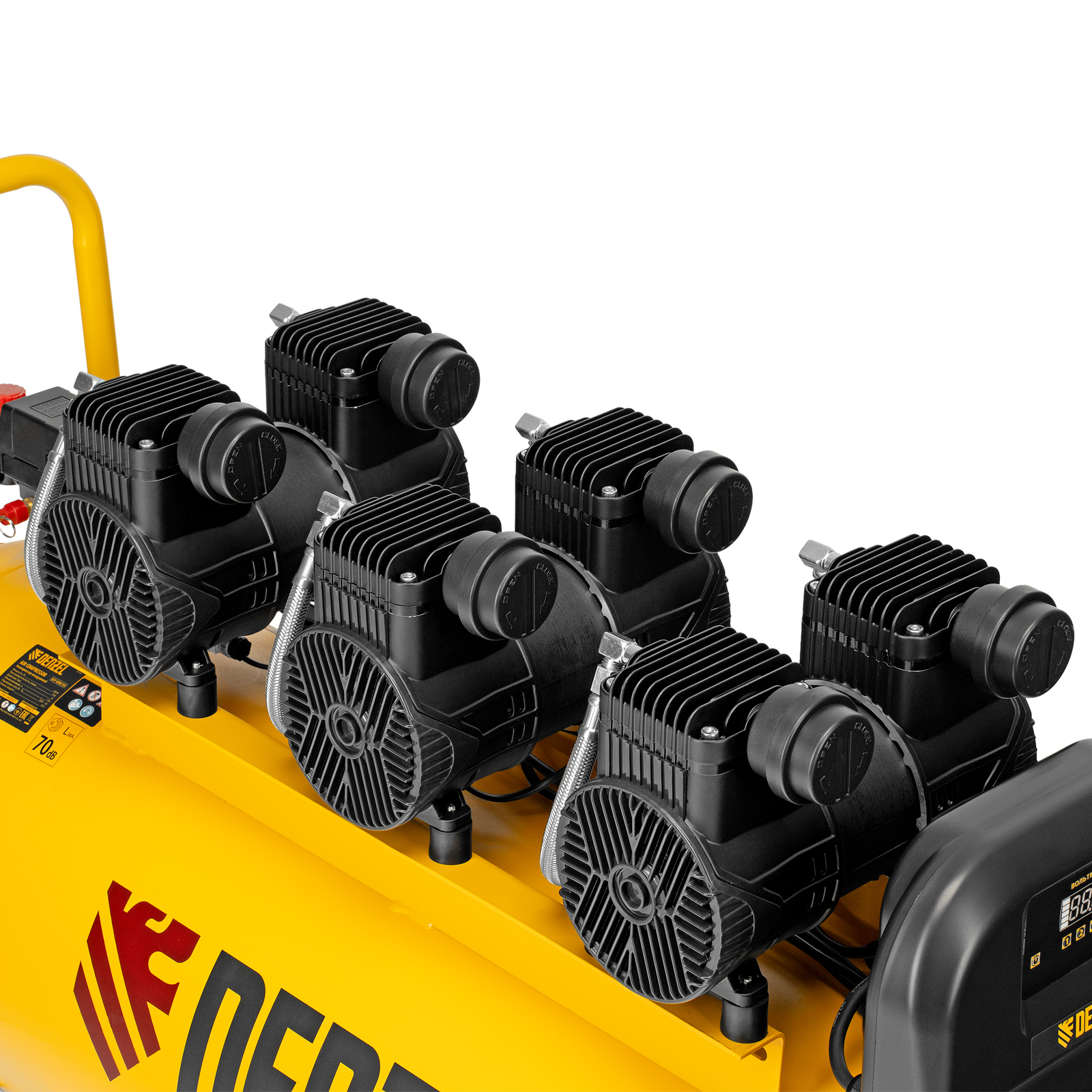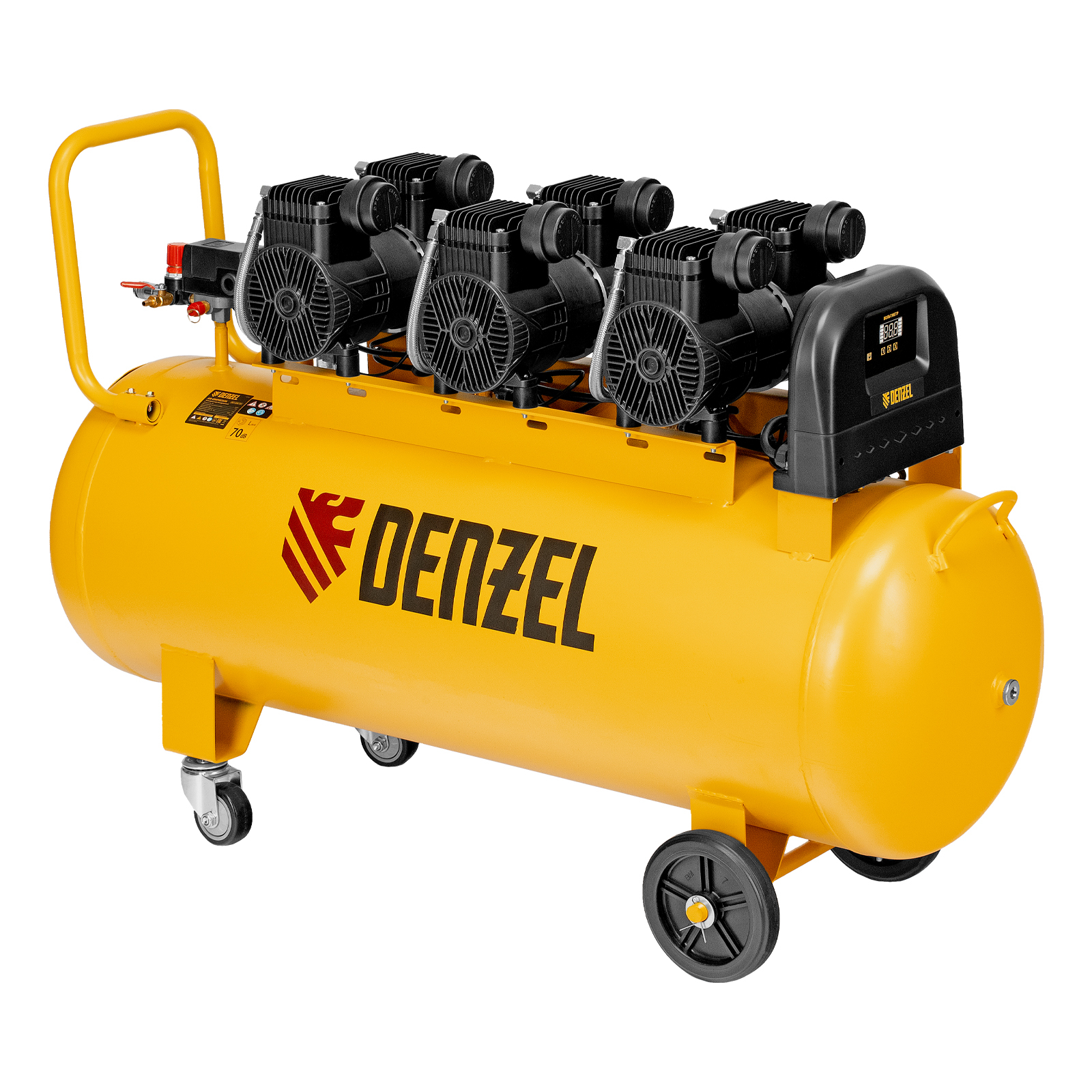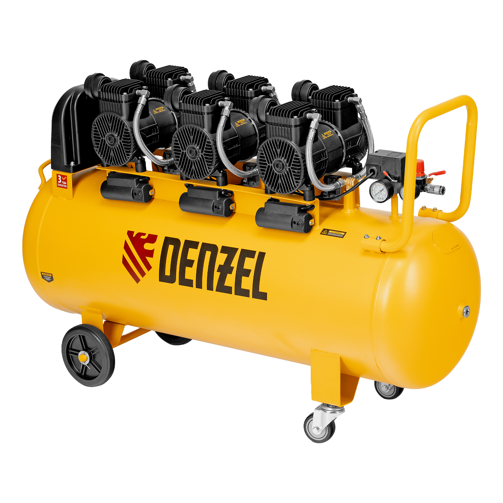Безмасляный малошумный компрессор Denzel DLP-4500/150 58146 мощностью 4,5 кВт (3 x 1,5 кВт) и производительностью 750 л/мин, с ресивером объемом 150 л, оснащен двигателем со скоростью вращения 2850 об/мин. Предназначен для обеспечения пневмоинструмента сжатым воздухом. Для работы компрессора не требуется масло, поэтому он подходит для проведения покрасочных работ и продувки электронных компонентов. Прямой привод обеспечивает максимально эффективную работу и высокую производительность. Благодаря низкому уровню шума эксплуатация компрессора не вызывает ощущение дискомфорта.