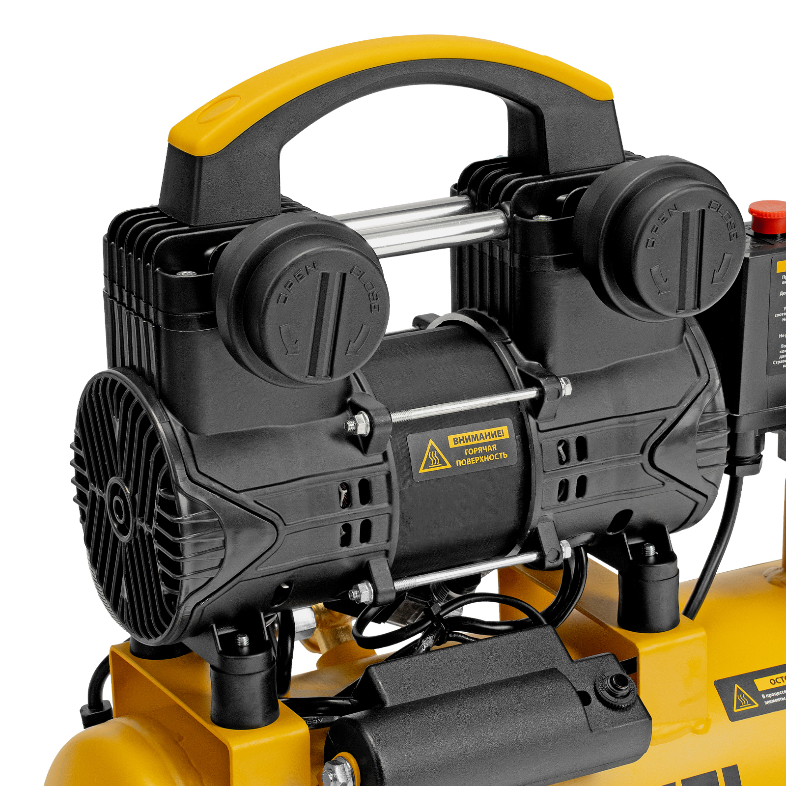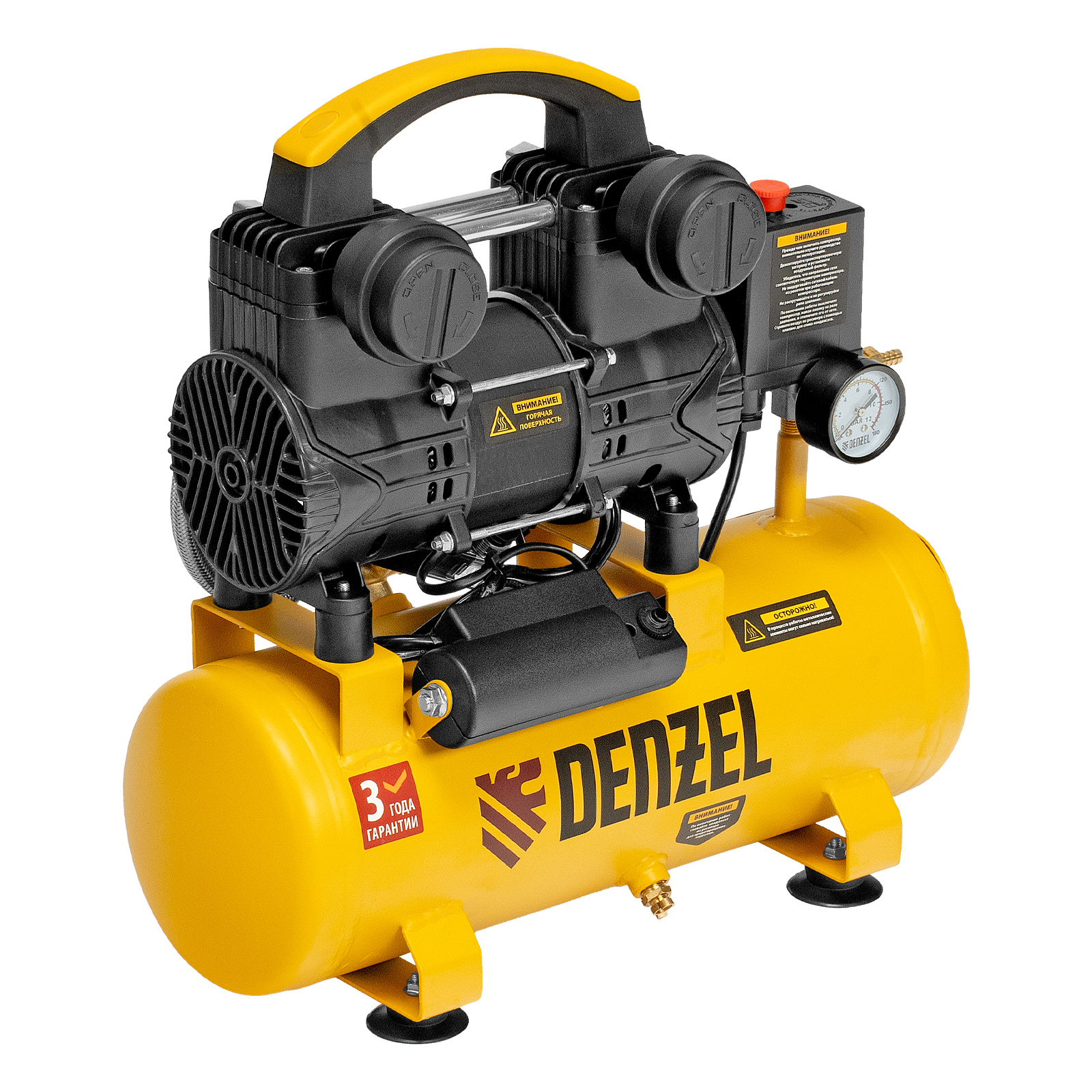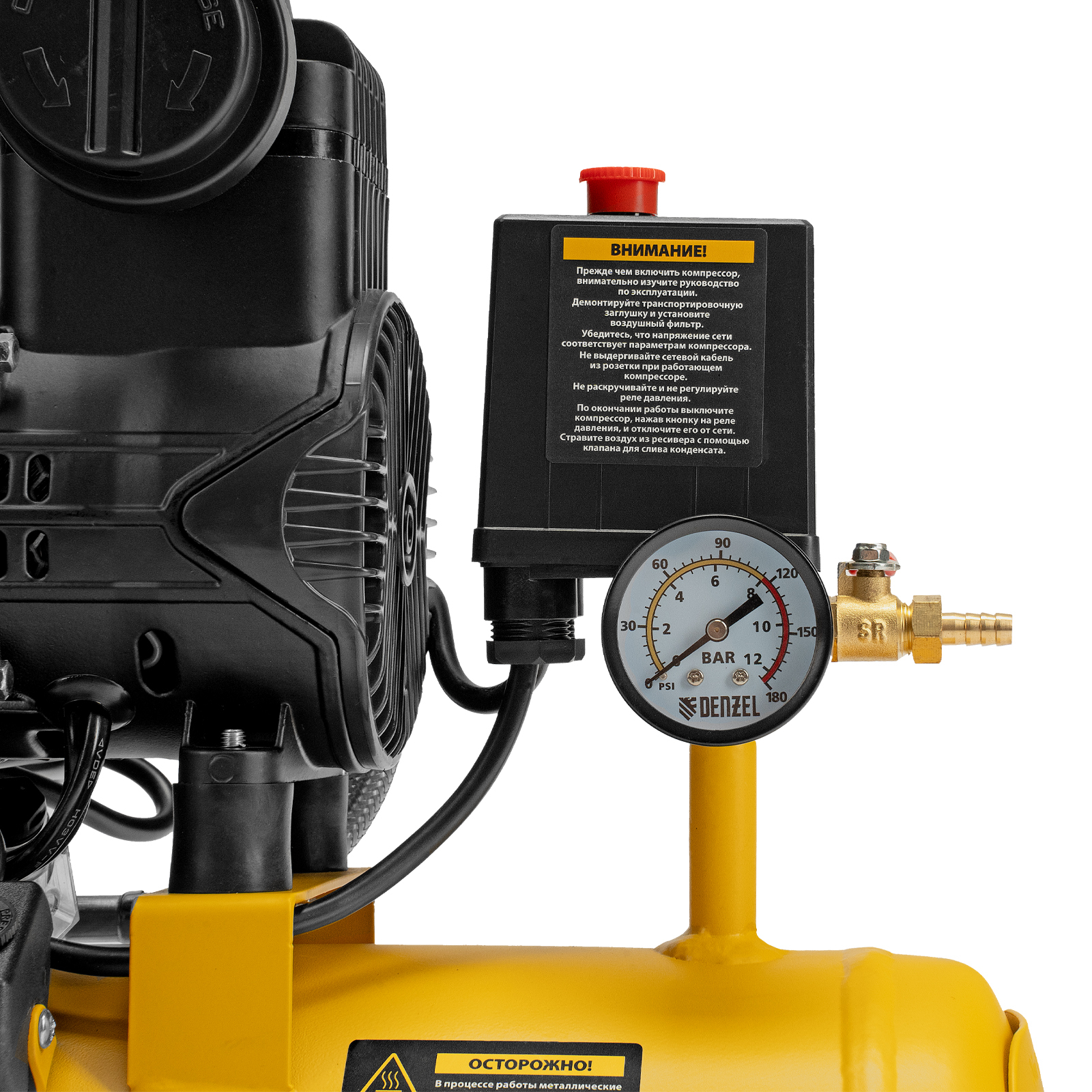- Контроль давления — компрессор оснащен удобным манометром.