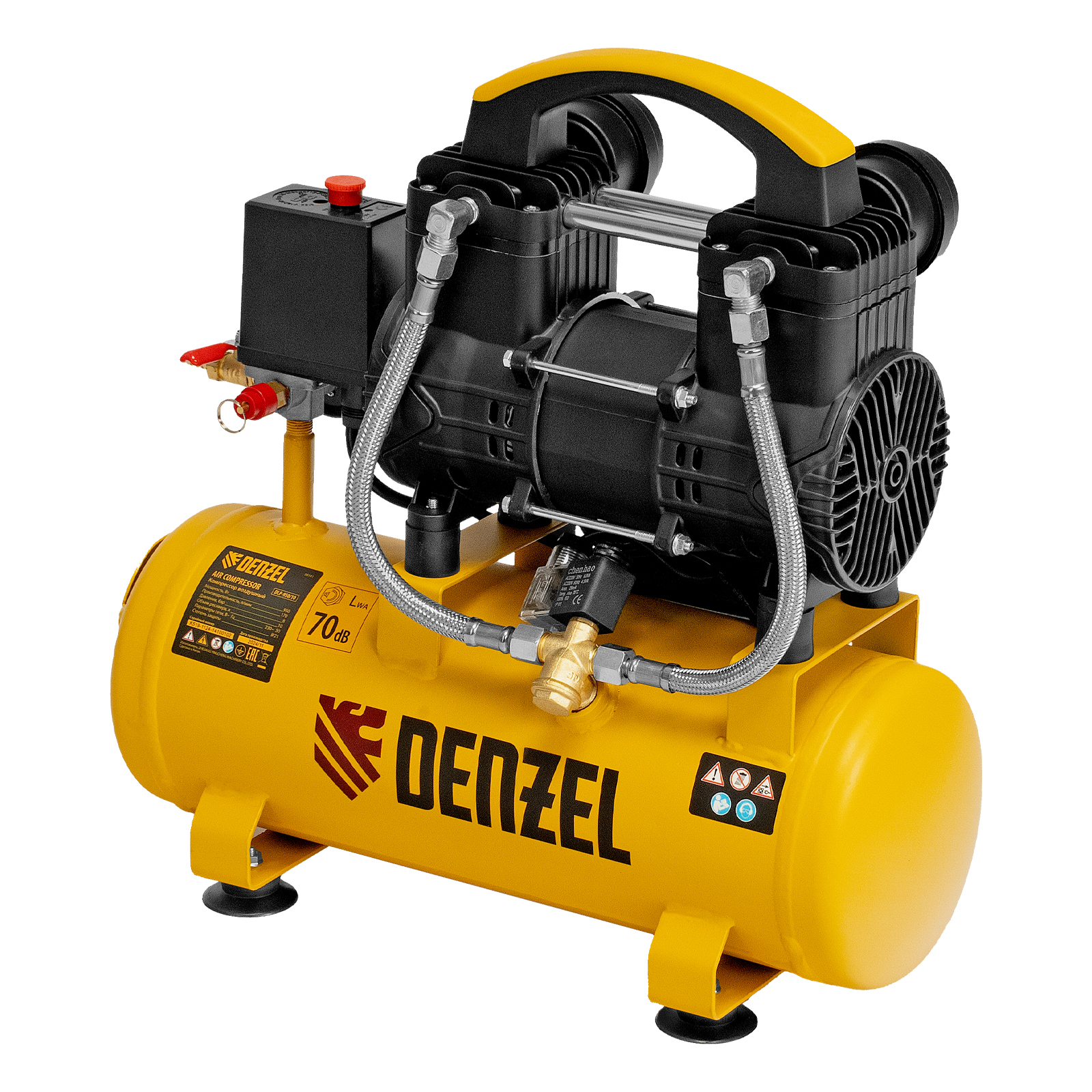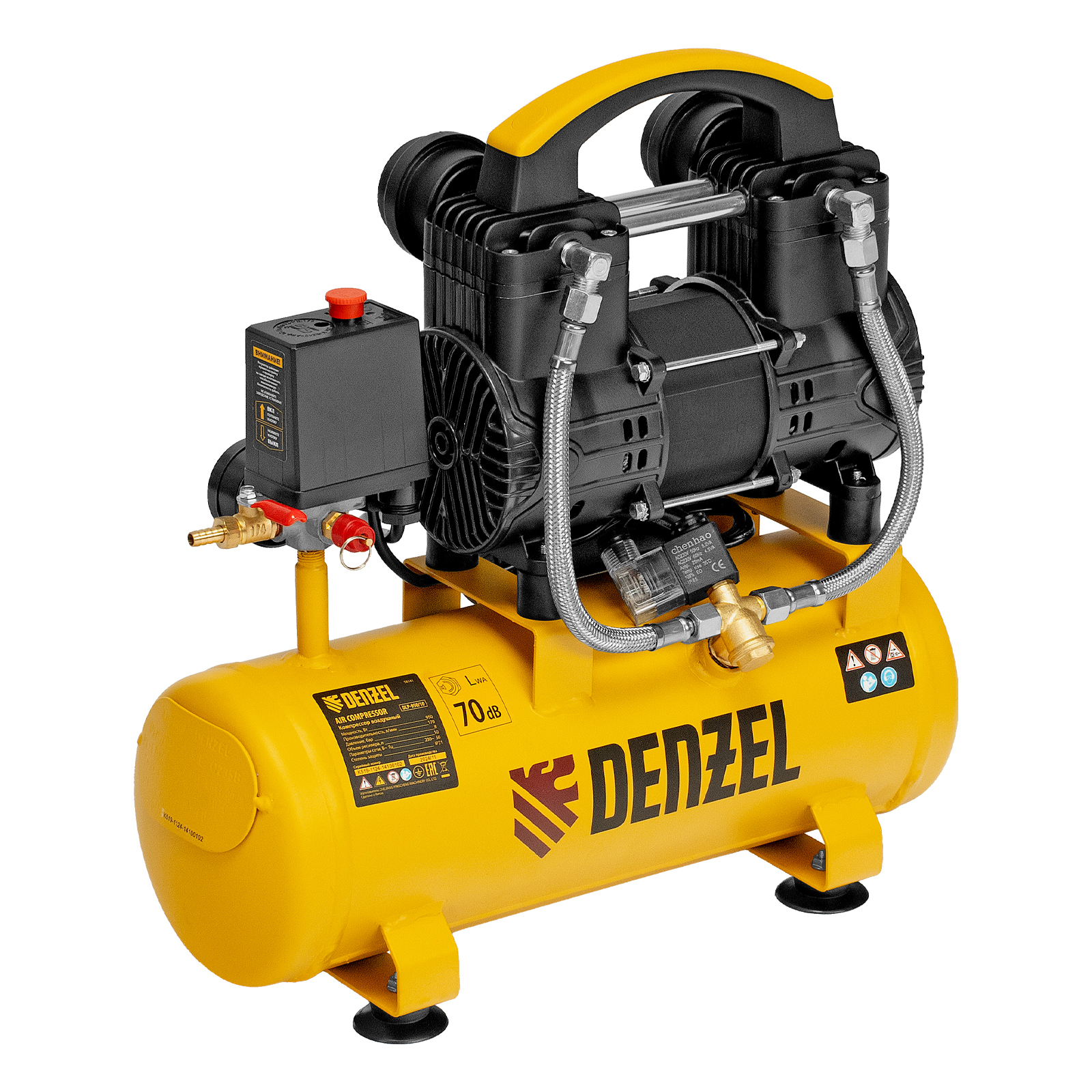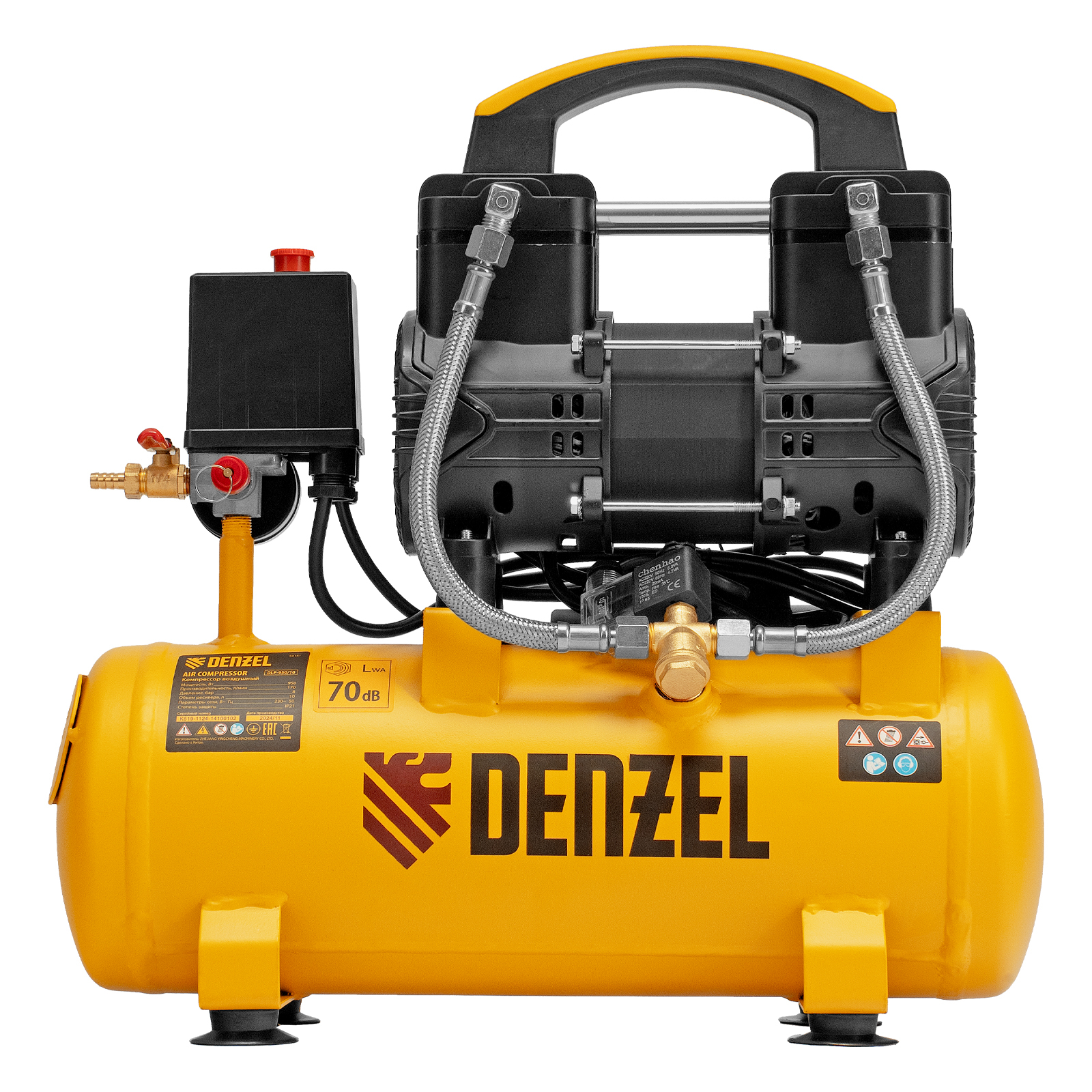 Безмасляный малошумный компрессор Denzel DLP-950/10 58141 мощностью 950 Вт и производительностью 170 л/мин, с ресивером объемом 10 л, оснащен двигателем со скоростью вращения 2850 об/мин. Предназначен для обеспечения пневмоинструмента сжатым воздухом. Для работы компрессора не требуется масло, поэтому он подходит для проведения покрасочных работ и продувки электронных компонентов. Прямой привод обеспечивает максимально эффективную работу и высокую производительность. Благодаря низкому уровню шума эксплуатация компрессора не вызывает ощущение дискомфорта.