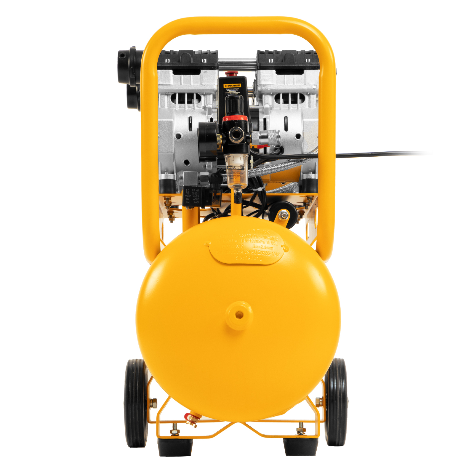 Безмасляный малошумный компрессор Denzel DLS 1500/50 58027 мощностью 1500 (2 х 750) Вт, объемом ресивера 50 л и производительностью 260 л/мин предназначен для обеспечения пневмоинструмента сжатым воздухом, подаваемым под давлением до 8 бар. Позволяет подключить пневматический заклепочник, дрель и т.д. Оптимален для работы с краскопультом и для продувки электронных компонентов, т. к. в сжатом воздухе отсутствуют частицы масла. Компрессор пригодится в мастерской, гараже, на строительной площадке.