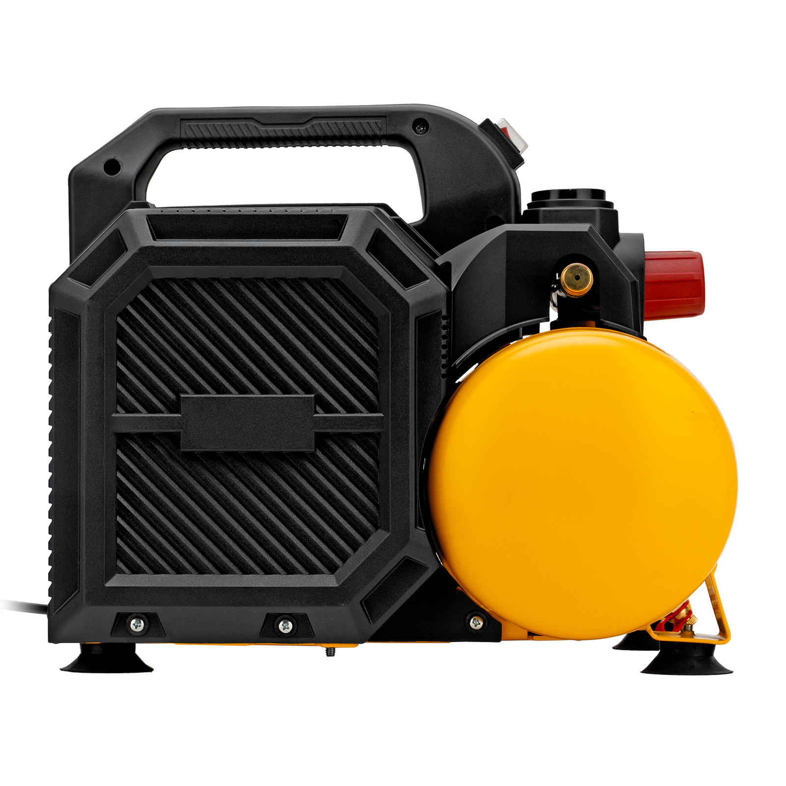 - Минимальный уровень вибраций в сравнении с масляными аналогами — компрессор установлен на резиновые опоры-присоски.