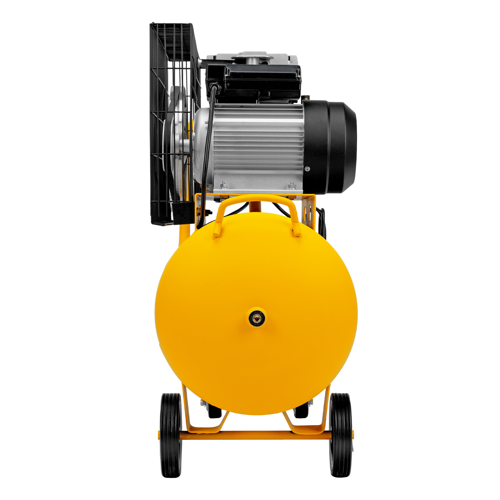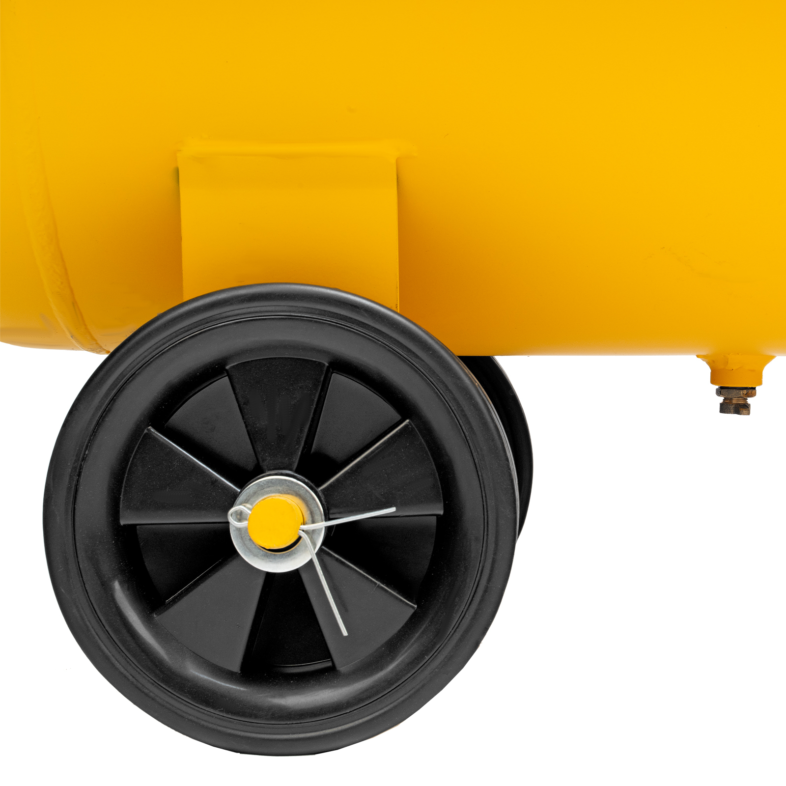 - Мобильность — 4 колеса, 2 из которых поворотные, упрощают перемещение компрессора по рабочей площадке.